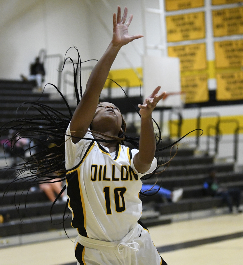 Dillon’s Khwnylahi McKinnon scored the first 2 points of the game. Treasure Davis made 2 consecutive layups followed by Khwnylahi McKinnon with a layout and a free throw. With 4:08 remaining in the first quarter, the Lady Wildcats were up 9-0. Georgetown’s F. Satcher connected for two 2-point baskets in a row. Dillon’s Treasure Davis sank a free throw followed by Zadaiya Moody who connected for 2 layups in a row to give Dillon an 18-4 lead. The Bulldogs’ J. Tiondra banked 1 in for 2 points. Dillon’s Ayonna Lester responded with a 2-point basket. After the first quarter, the Dillon Lady Wildcats were up 23-6.
