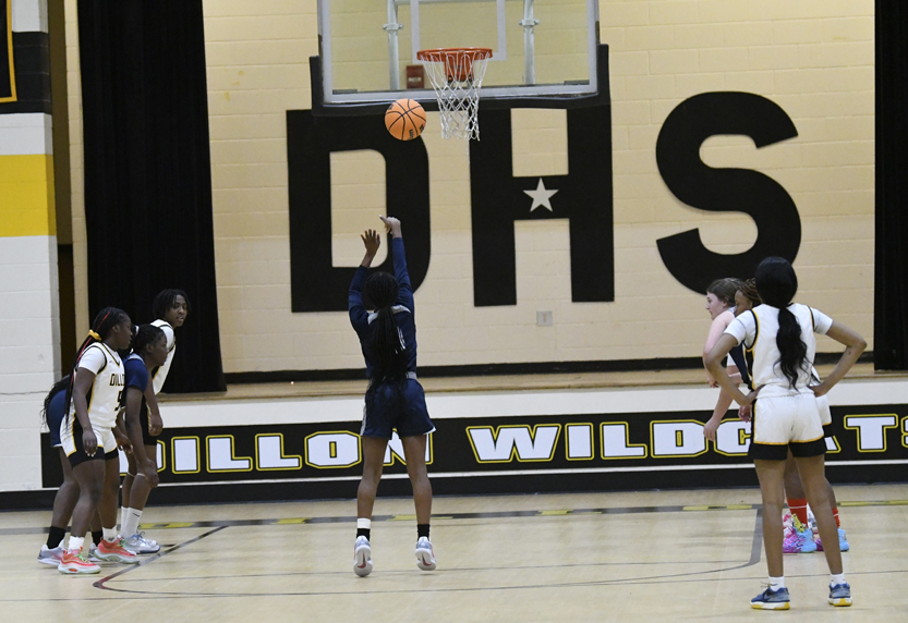 The Lady Wildcats’ Treasure Davis sank a 2-point basket to begin the third quarter of play followed by Ayonna Lester who connected for 2 free throws for Dillon. After a scramble for a loose ball, Dillon’s Treasure Davis sank a 2-point basket followed by Ayonna Lester with a 2-point basket of her own. Georgetown’s D. Tacarra sank a free throw. Dillon’s Jiana McGill connected for a 2-point basket followed by Georgetown’s D. Makinizie who banked 1 in for 2 points. The Lady Wildcats’ Jiana McGill calmly sank 2 free throws followed by a 2-point basket by Treasure Davis. Georgetown’s J. Tiondra connected for a 2-point basket. After 3 quarters of play, Dillon was up 54-16. Dillon committed 5 fouls, and Georgetown committed 4 fouls in the third quarter.
