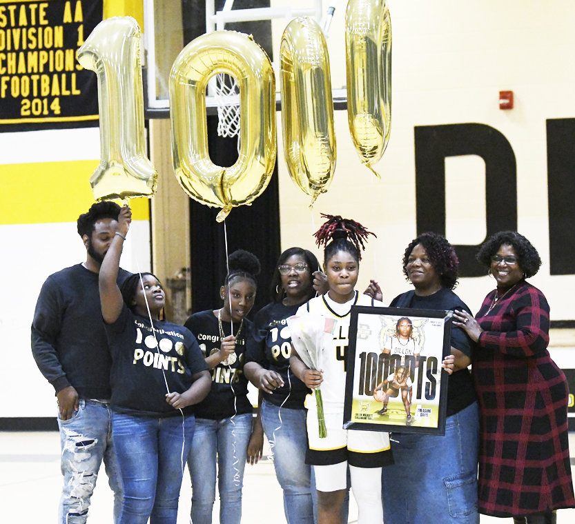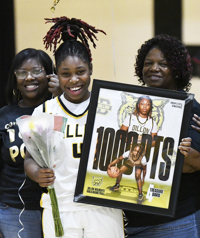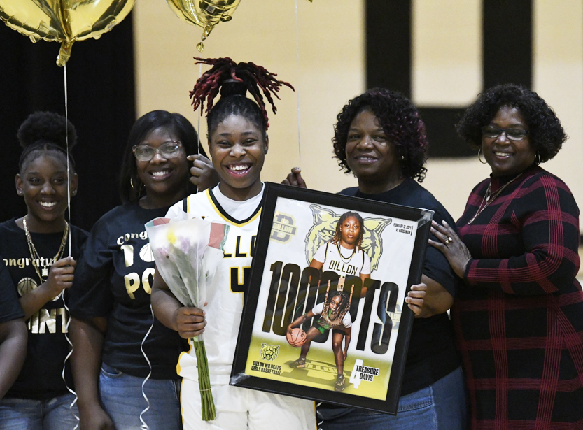 Dillon’s Treasure Davis was recognized during halftime for her 1,000th point of her DHS varsity career.