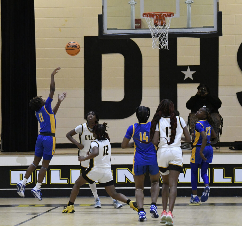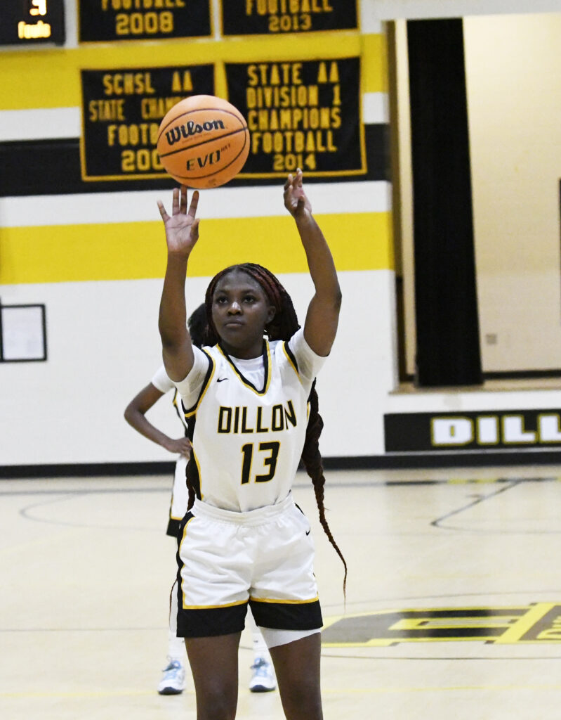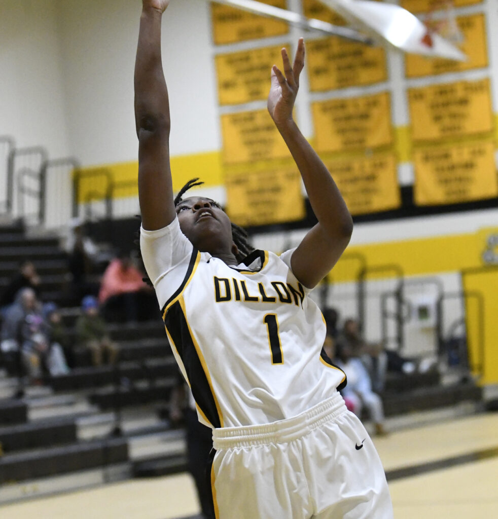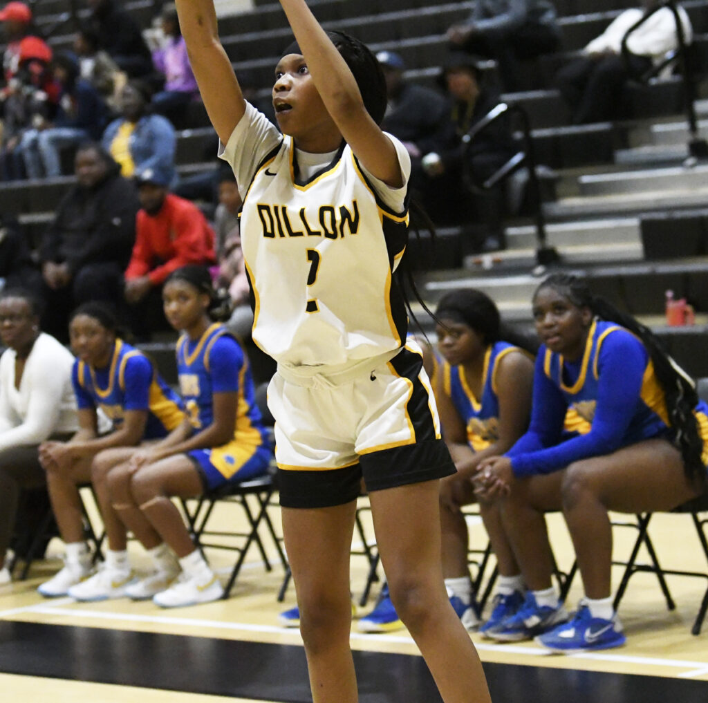 Loris controlled the opening tip-off, and Loris’ Dazena Capers attempted the first 3-point shot of the game. Dillon quickly answered with a 3-point basket by Azyriah Ford followed by 2 free throws by Dillon’s Zynijah Pernell. Loris connected for a free throw followed by a 2-point basket by Ayonna Lester. Dillon’s Khwnylahi McKinnon connected for a 2-point basket to give Dillon a 9-1 lead with 4:59 remaining in the first quarter. Dillon managed to get a 12-3 lead. After the first quarter of play, Dillon was up 13-6. Each team committed 4 fouls in the first quarter.