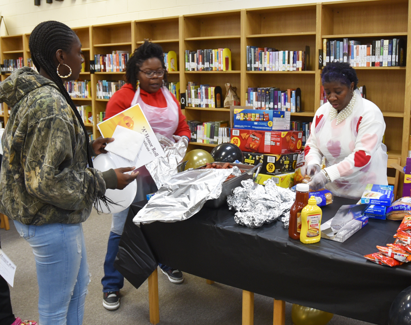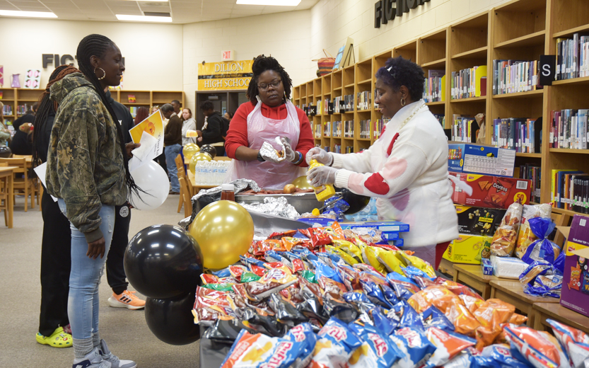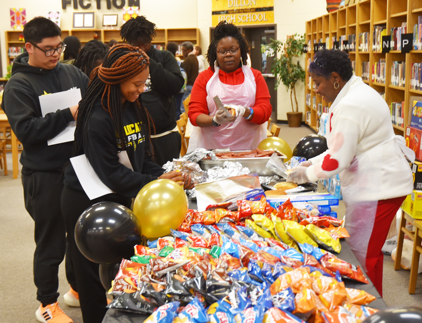 The Boys To Men and Girls With Purpose Mentoring Group headed by Bobby Porter with Dillon High School teachers and the assistance of others served 301 “A” and “A-B” Dillon High School honor rolls students with refreshments of water, hot dogs, chips, etc. for their academic achievements for the past 9 weeks.