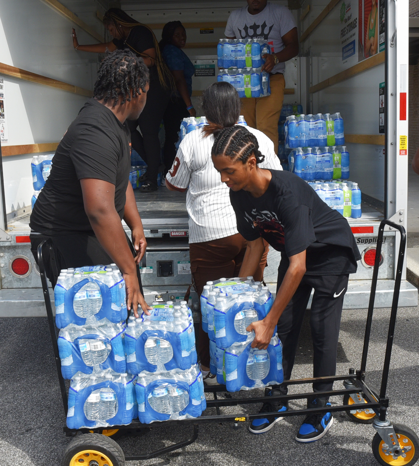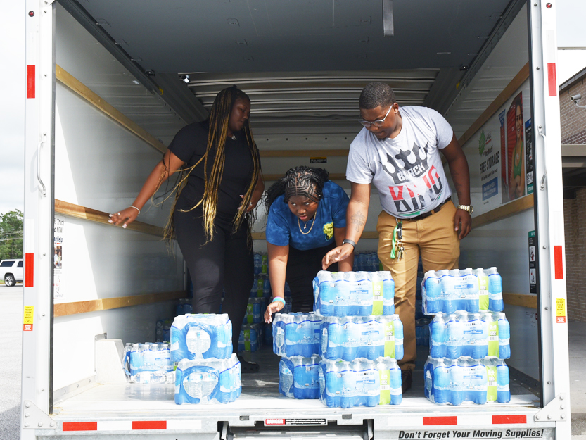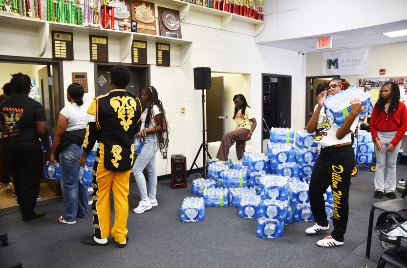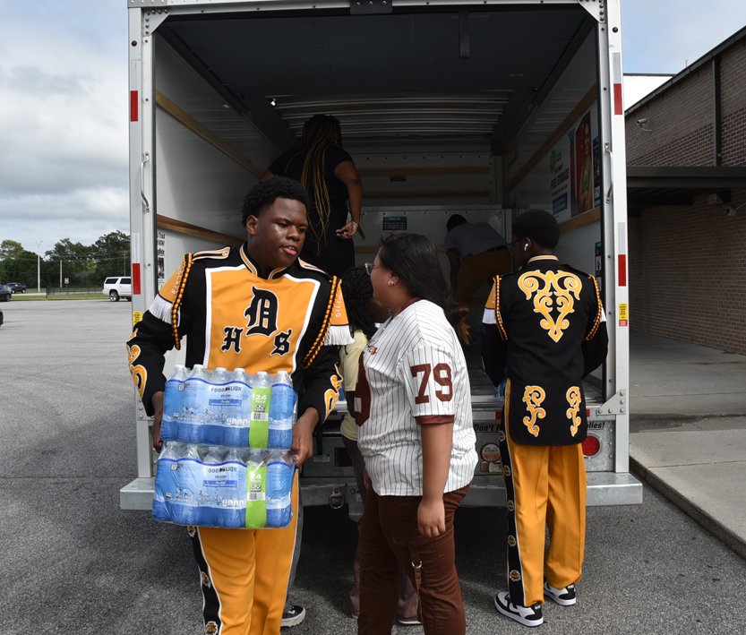 Members of the Dillon High School Class of 1985 made a donation of water and monetary donation to Dillon High School Band Director Adrian Wright on Wednesday, August 6, at the Dillon High School Band department. A U-Haul truck was delivered full of water. Everyone assisted in the unloading of the truck.