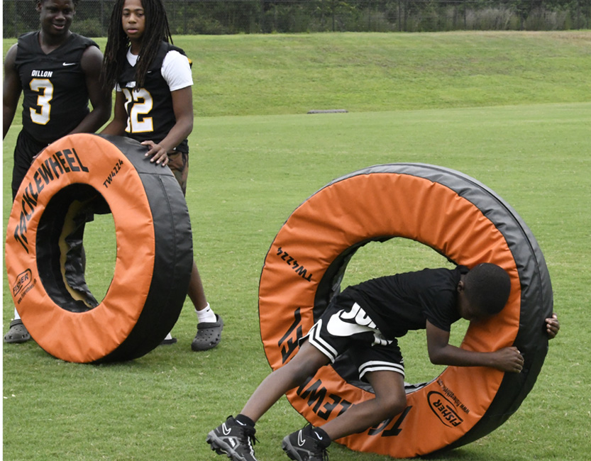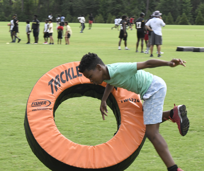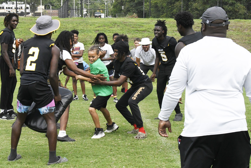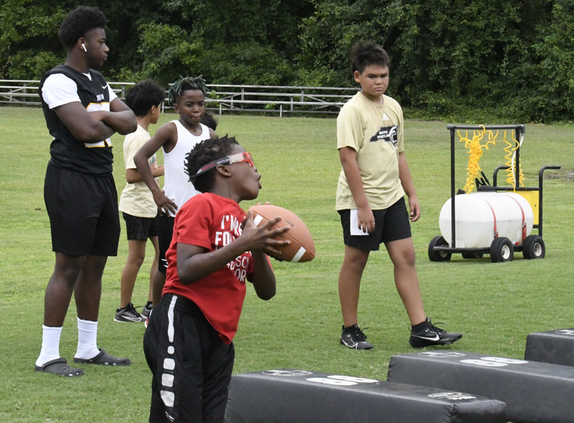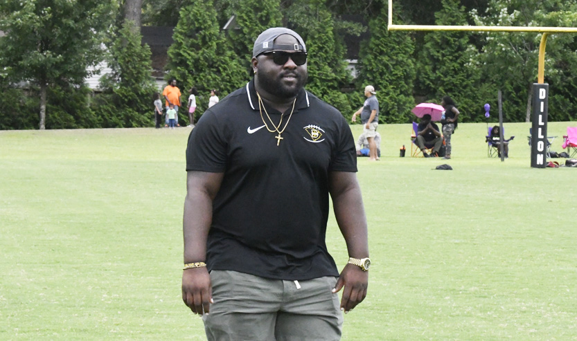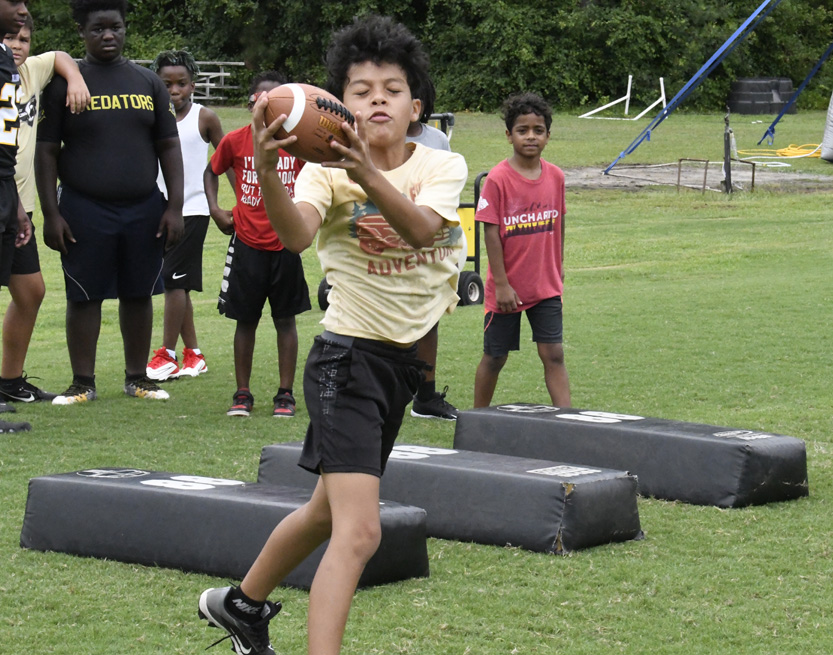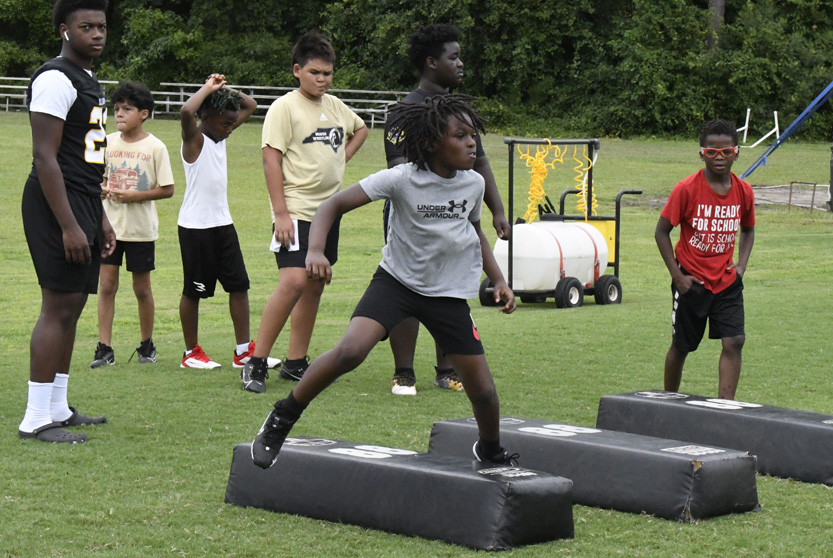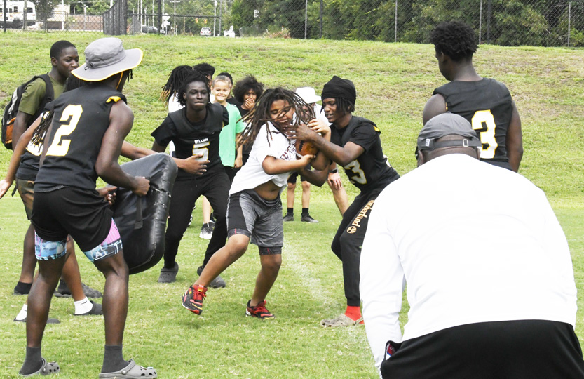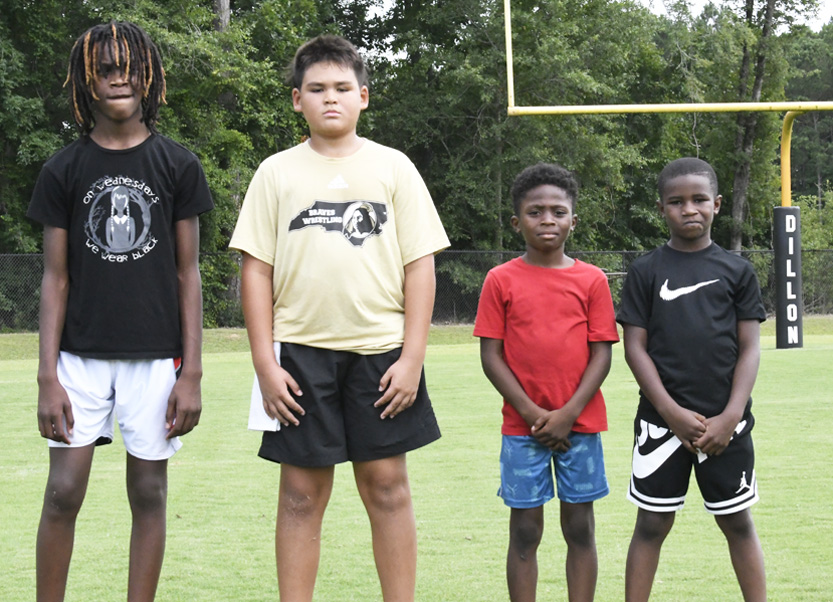 The Dillon High School varsity and junior varsity coaches and players held the first youth football camp for ages 8 through 12 on Thursday, July 11, at the Dillon High School football practice fields behind Dillon High School located at 1738 Hwy. 301 North, Dillon, S.C.