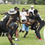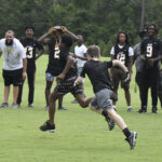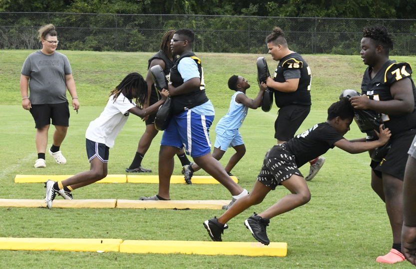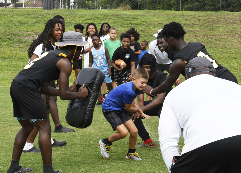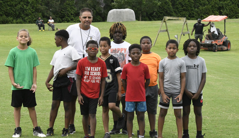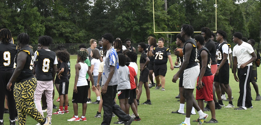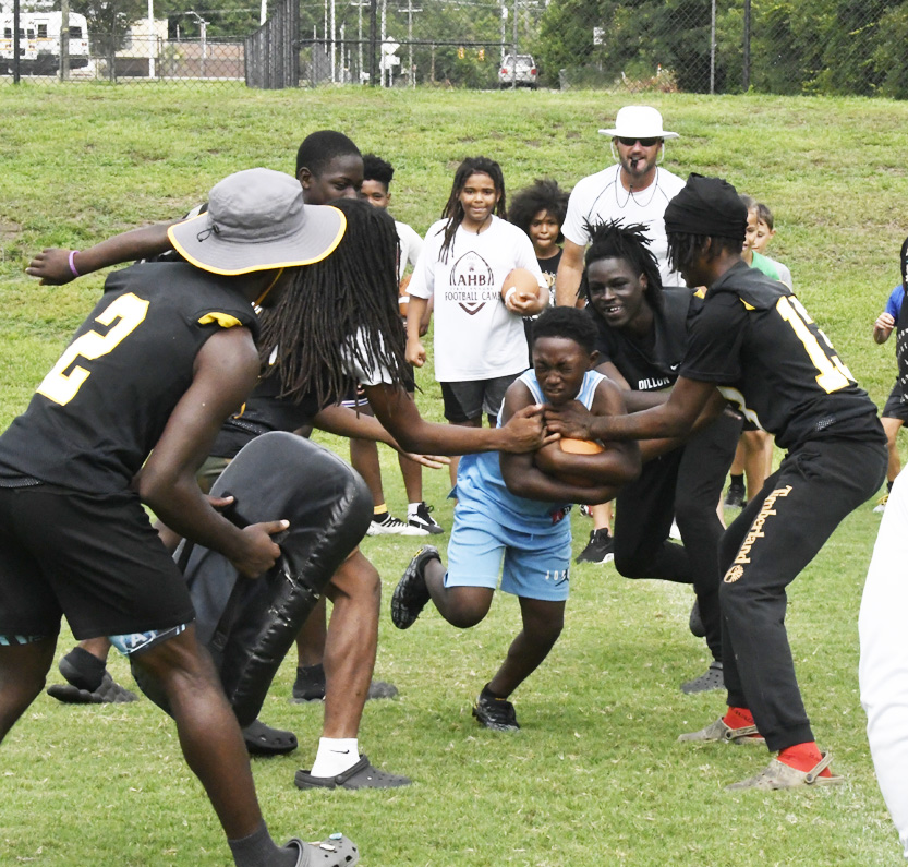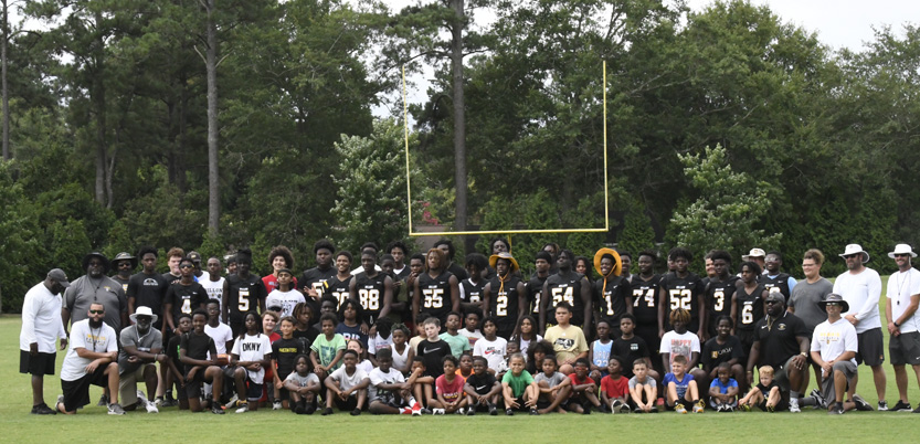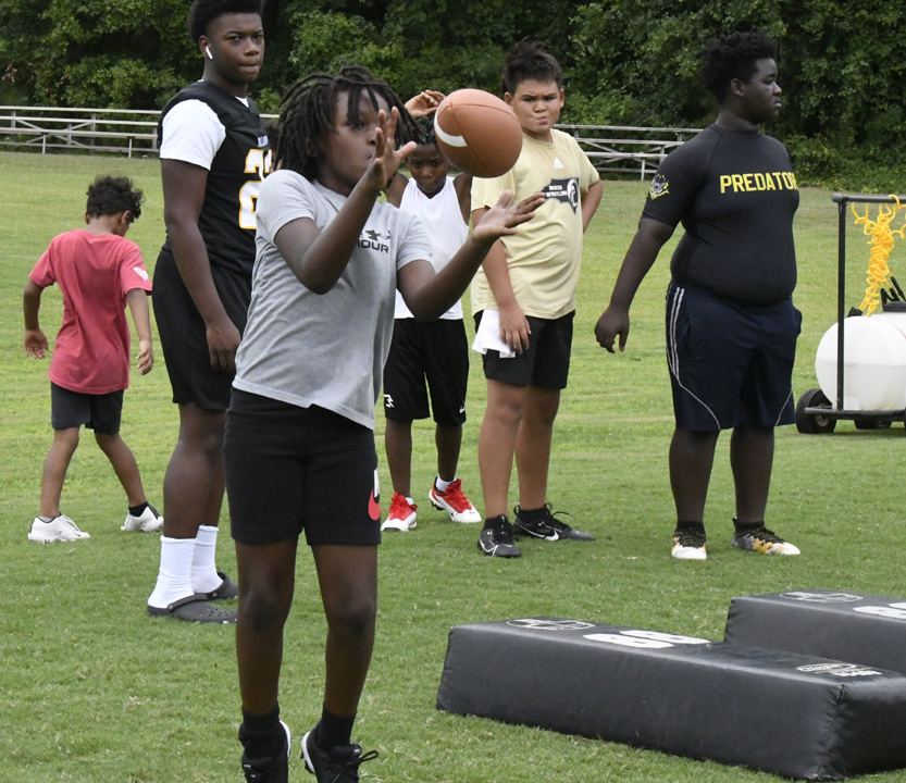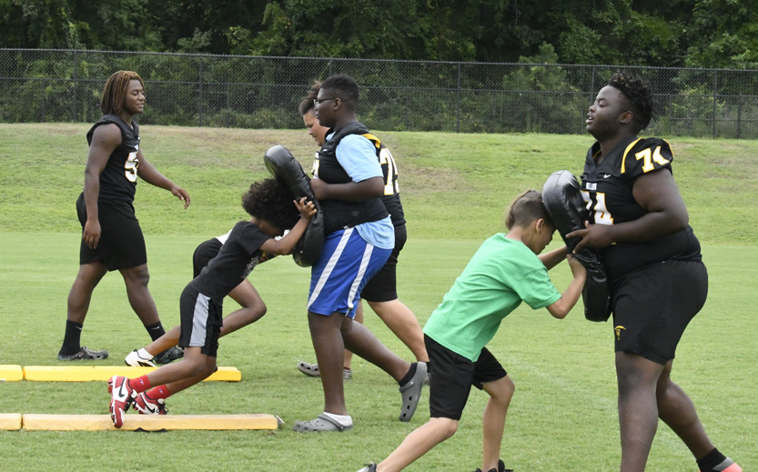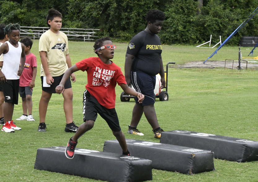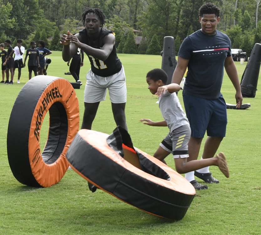 The Dillon High School varsity and junior varsity coaches and players held the first youth football camp for ages 8 through 12 on Thursday, July 11, at the Dillon High School football practice fields behind Dillon High School located at 1738 Hwy. 301 North, Dillon, S.C.