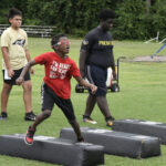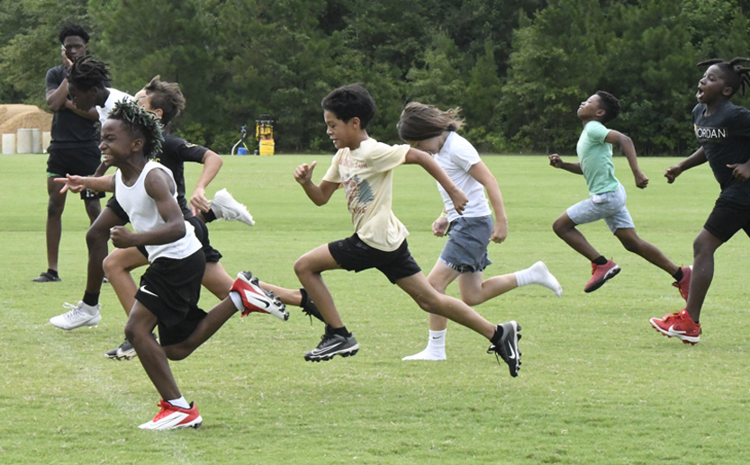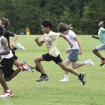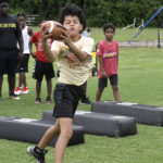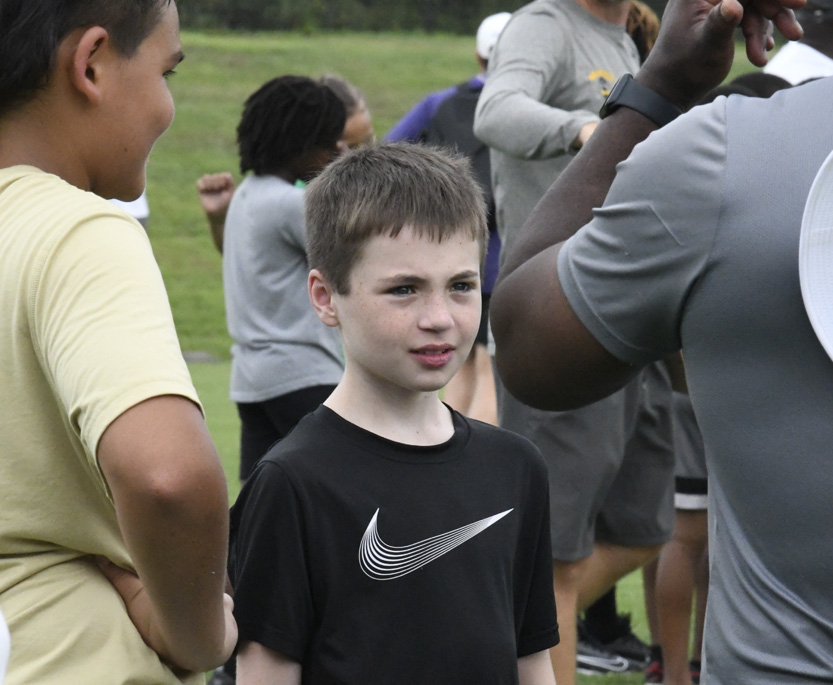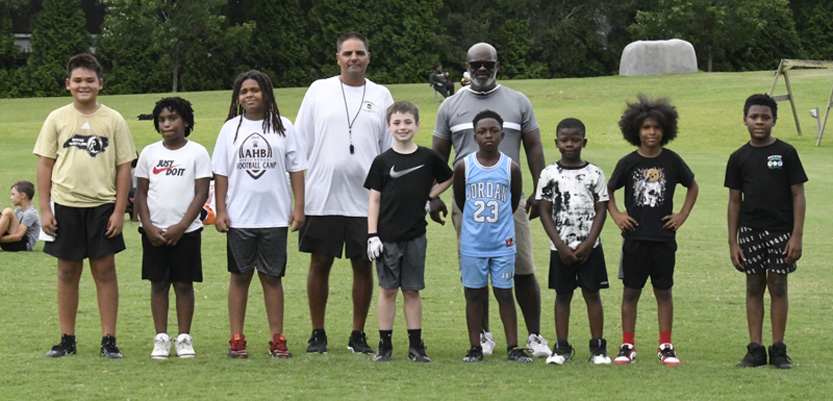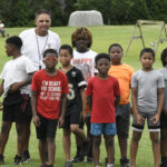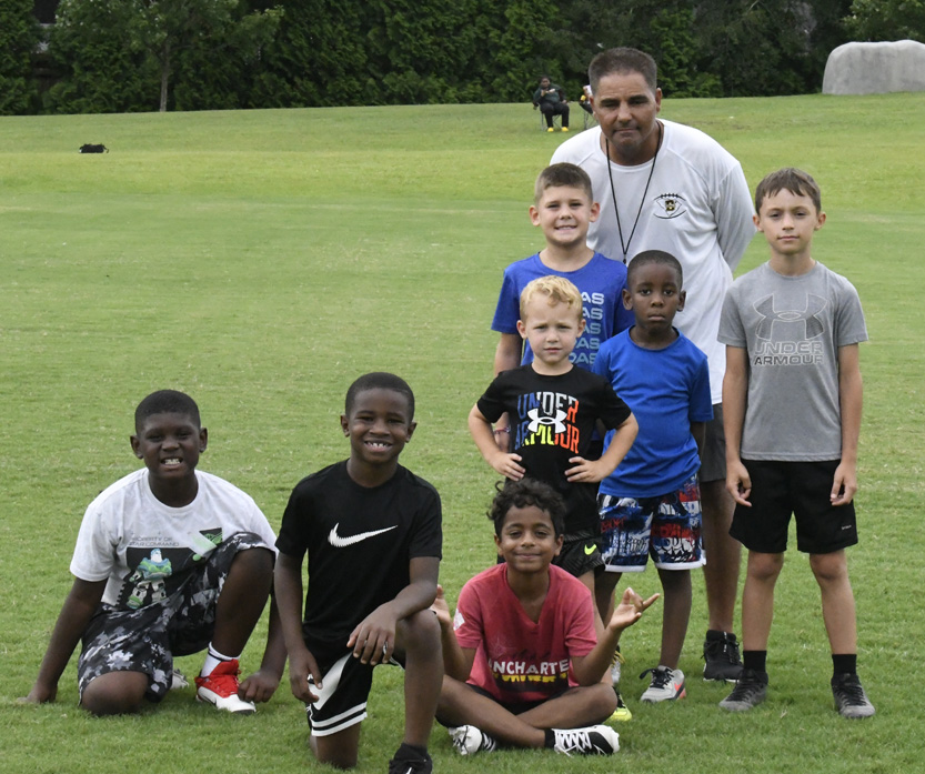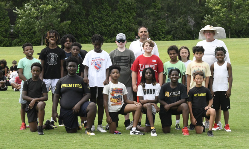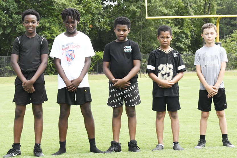 During the camp, each age group had a long-distance throwing contest and the fastest runner for each age group beginning with age 8, age 9, age 10, and age 11 and 12. The throwing winners were: l to r: Nicholas Marks, Aden Duke, Kayden Brunson, and Ashton Lane. The fastest runners were: l to r: Ja’Dore Walters, Trenton Blue, Aireon Owens, Pernell Legette, and Wesley Clark.