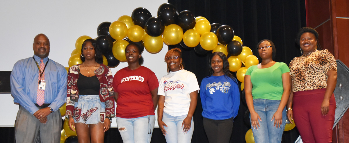 SOUTH CAROLINA STATE UNIVERSITY: Mariah Campbell, Tre’Ontae Davis, Keria Ham, Sha’Wanda Jacobs, Da’Kyiah Palmer, Ca’NAurey Reid, and Keiara Rush