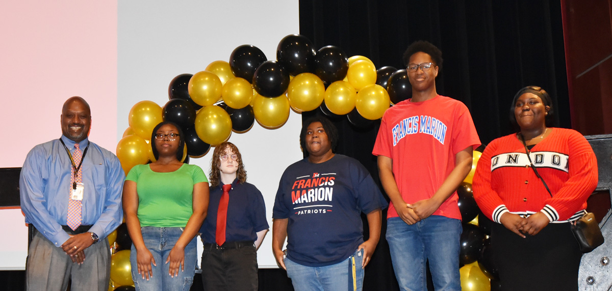 FRANCIS MARION UNIVERSITY: Jamiya Alford, Ava Campbell, Cameron Crawford (Scholarship: $2,336) , Larry Simms (Scholarship Grants: $41,580), and Innocent Tyson