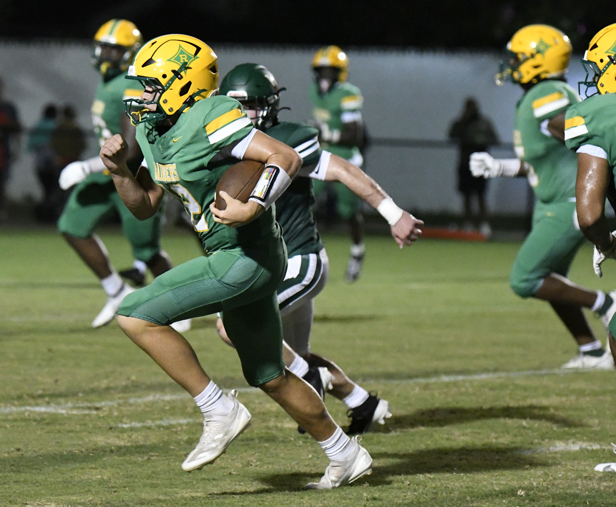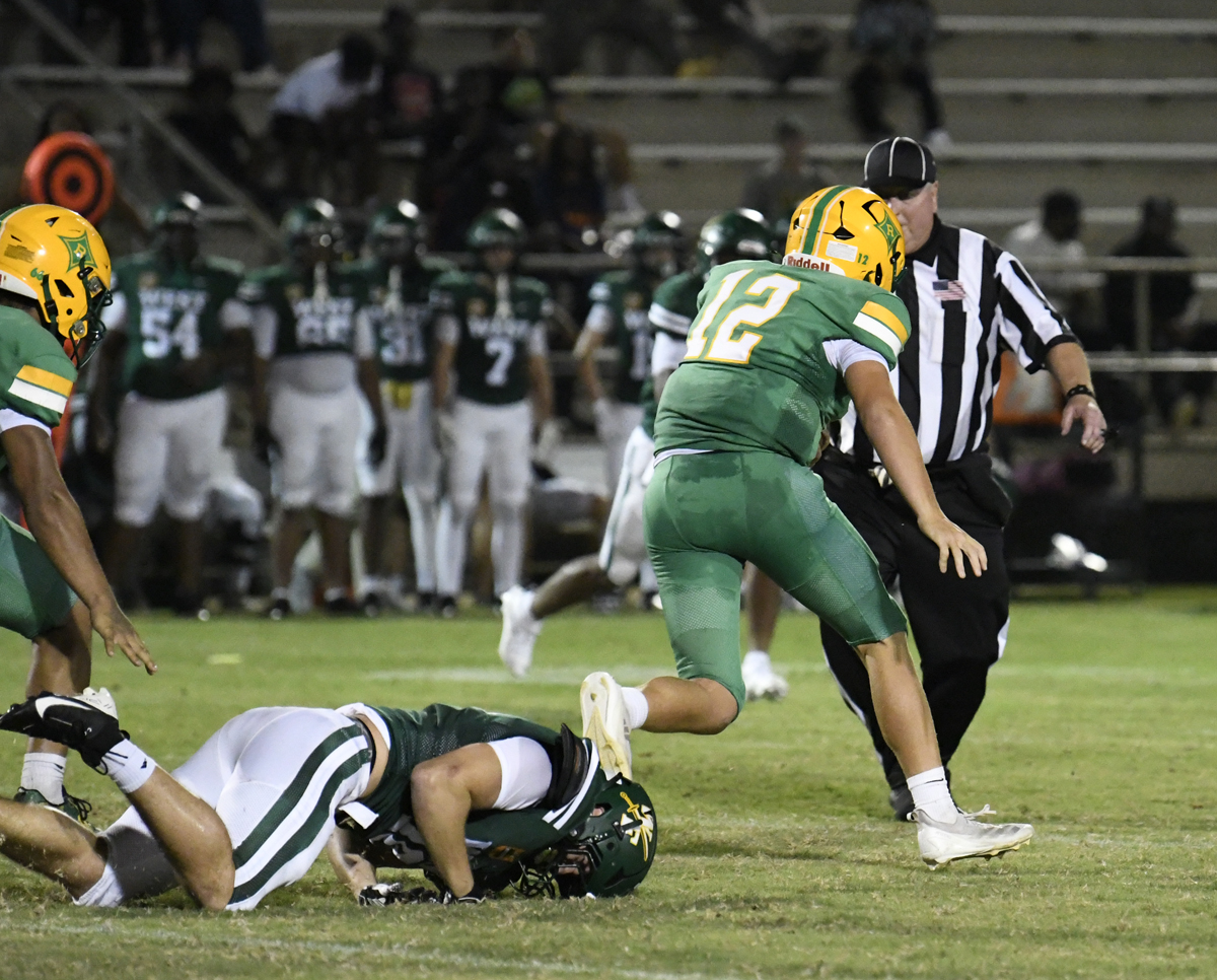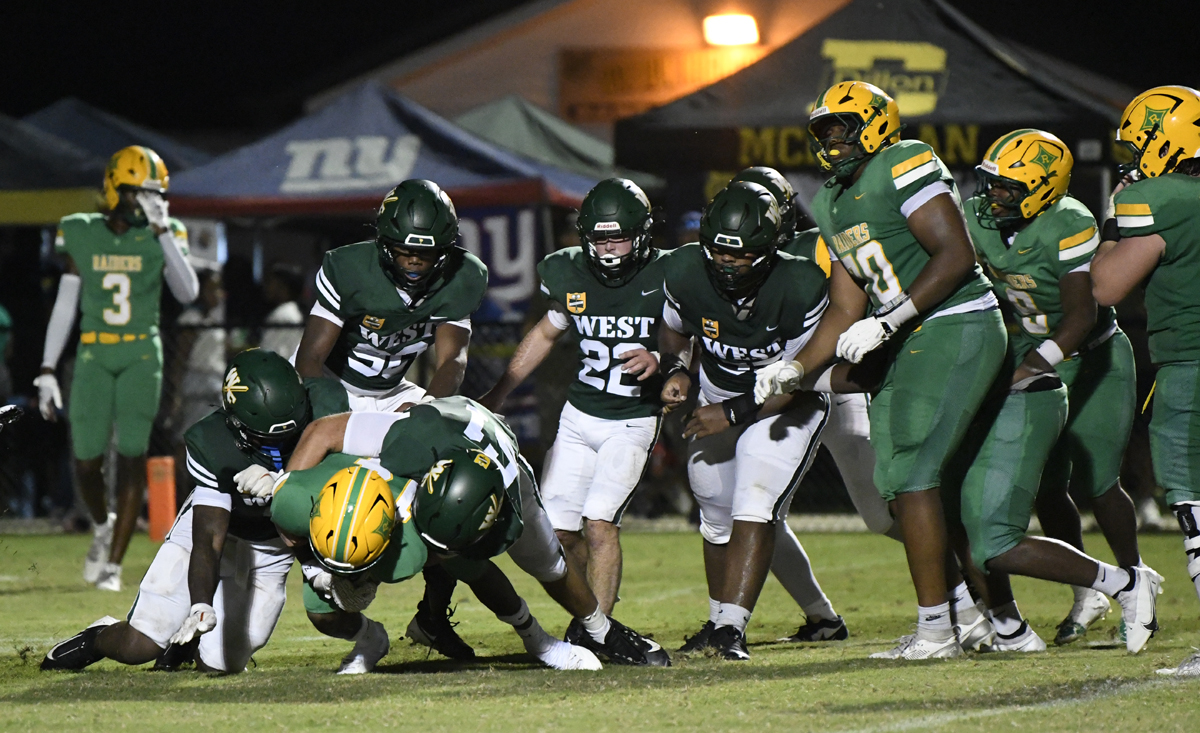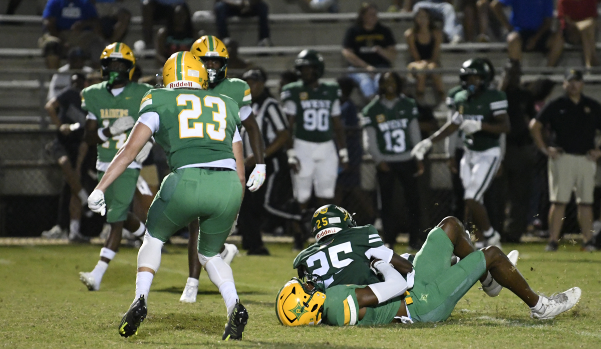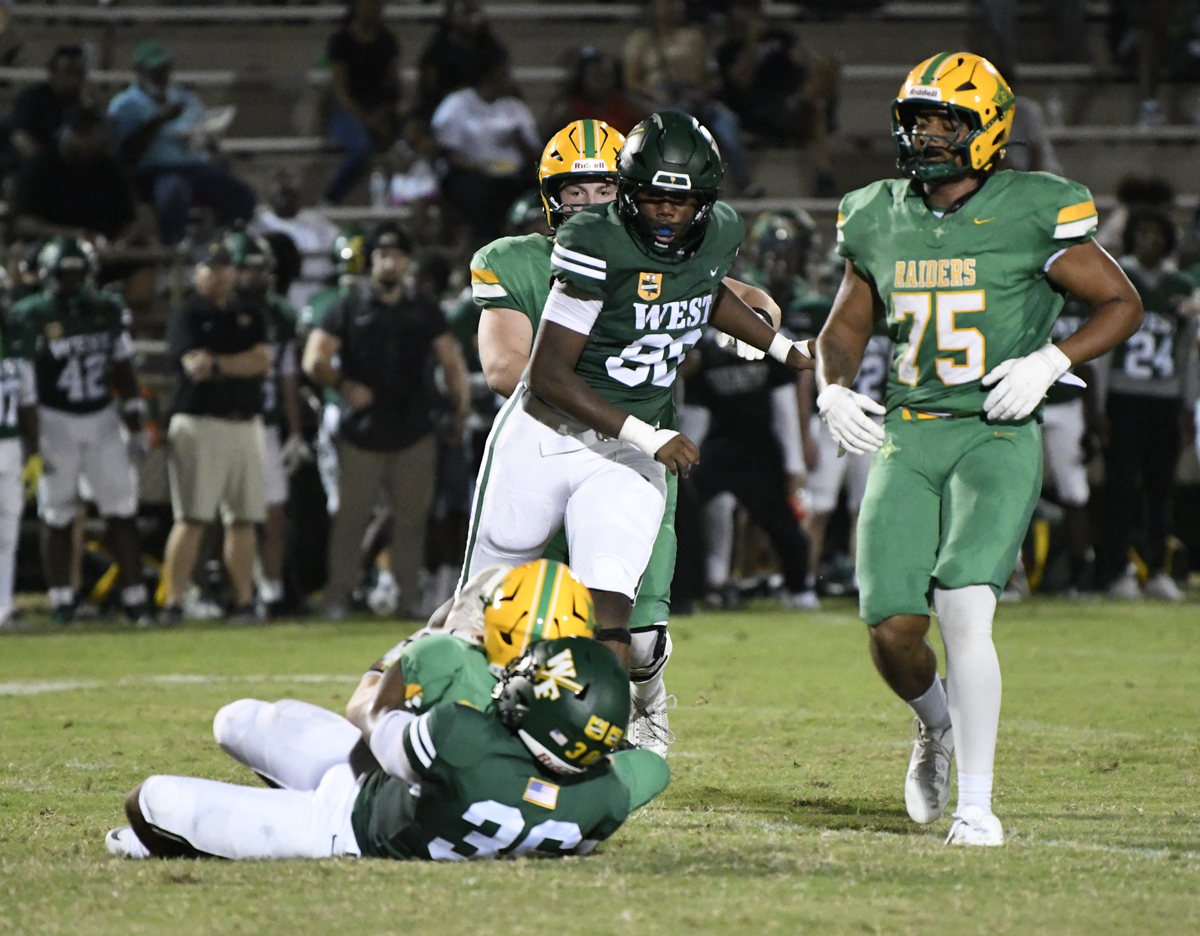 The West Florence Knights recovered an over-the-head of the Raiders’ quarterback and scored a touchdown with 8:15 remaining in the second quarter.