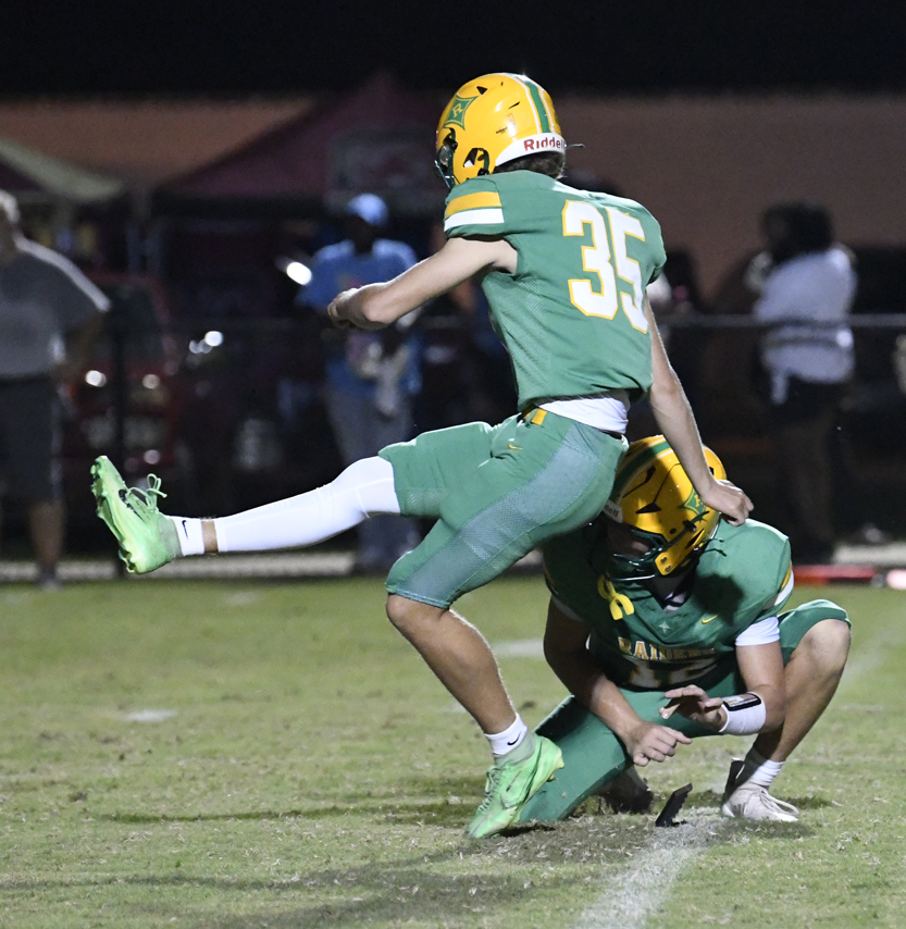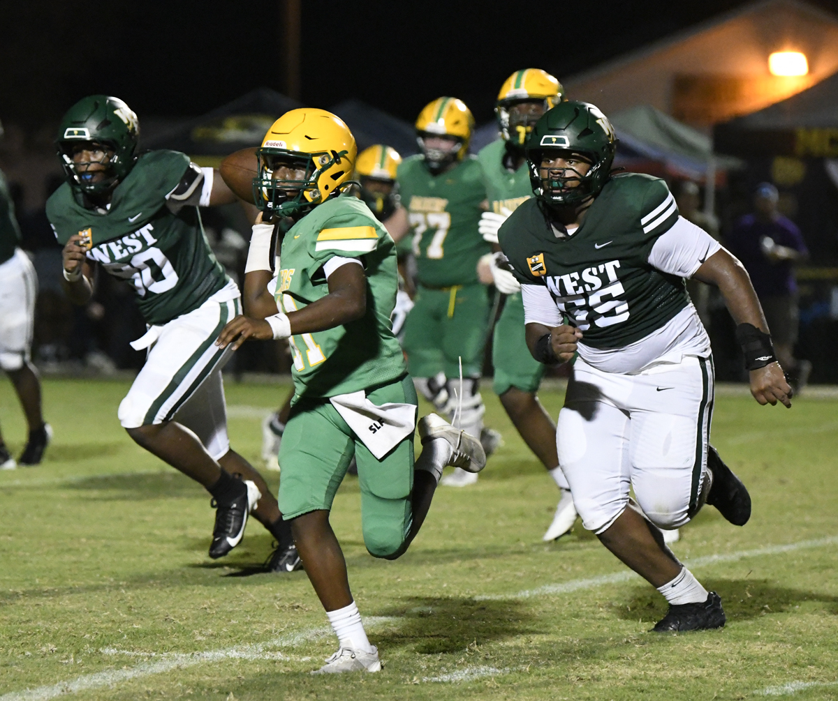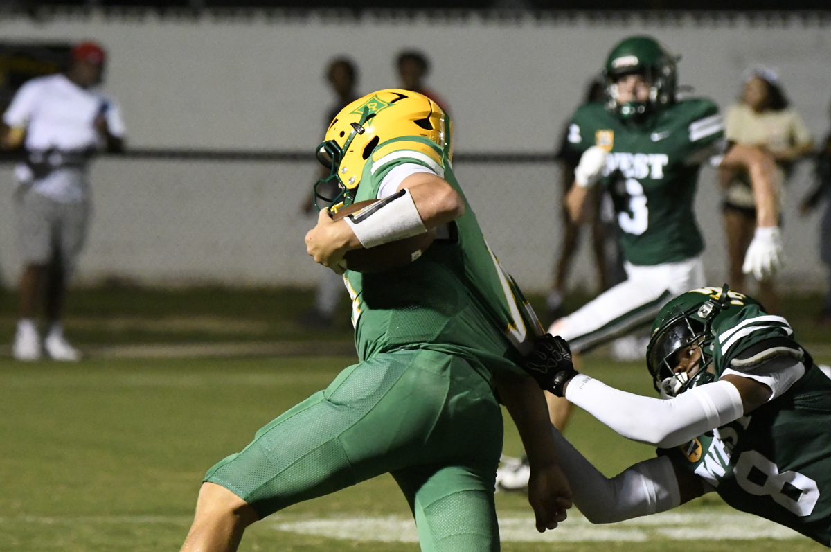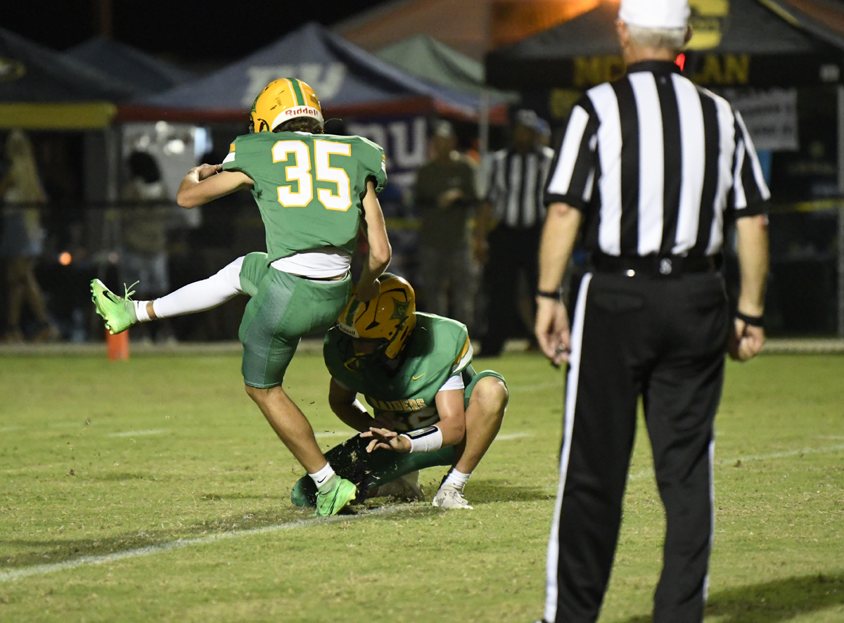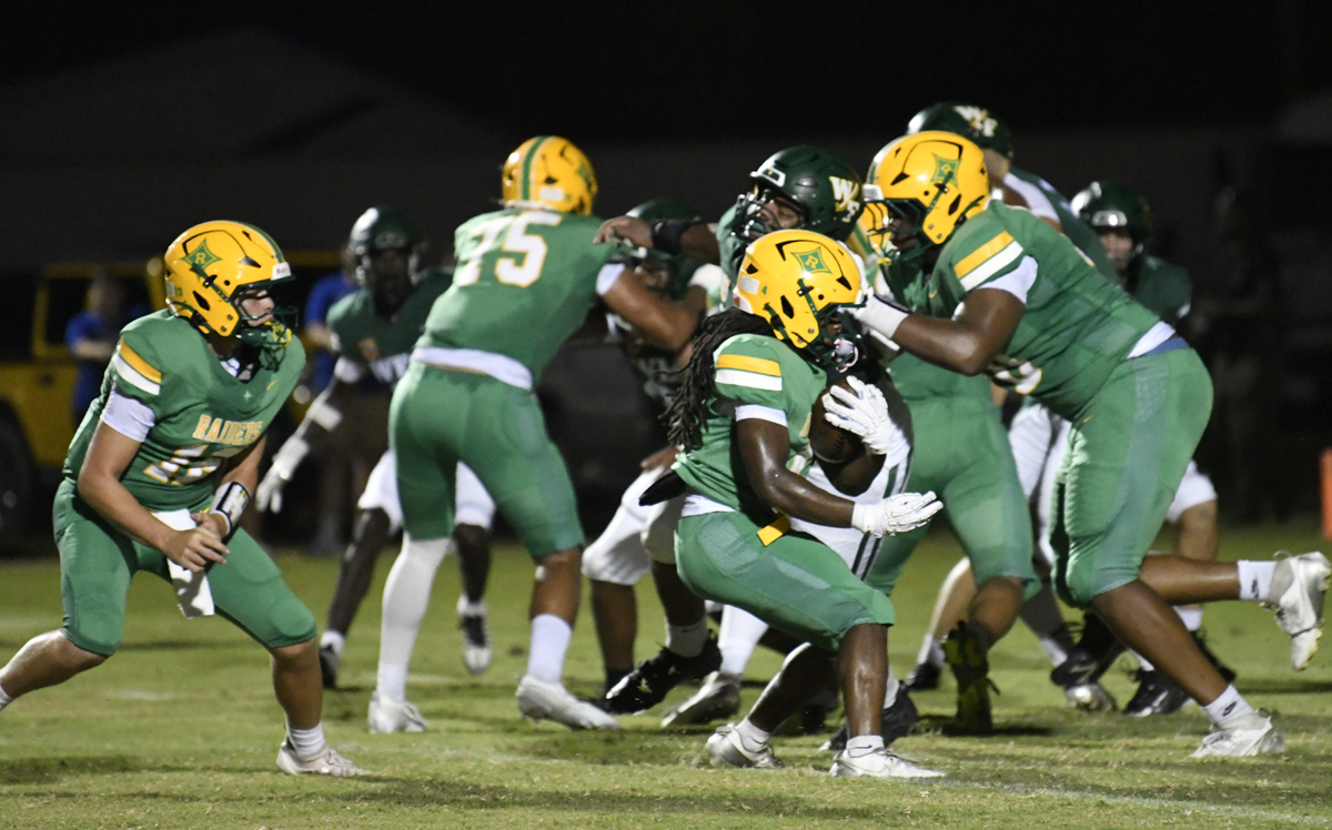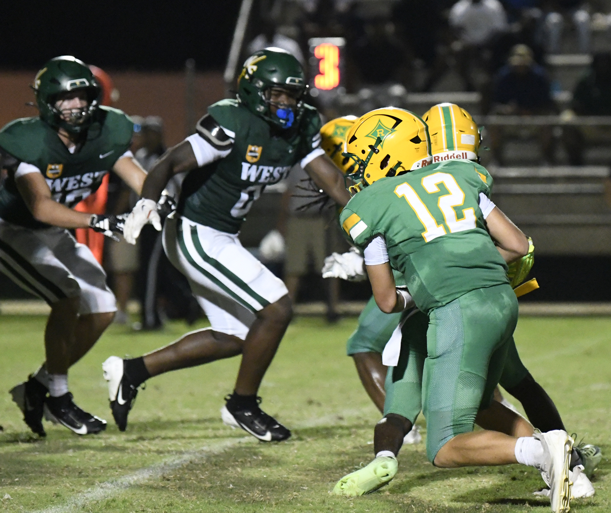 The West Florence Knights recovered an over-the-head of the Raiders’ quarterback and scored a touchdown with 8:15 remaining in the second quarter.