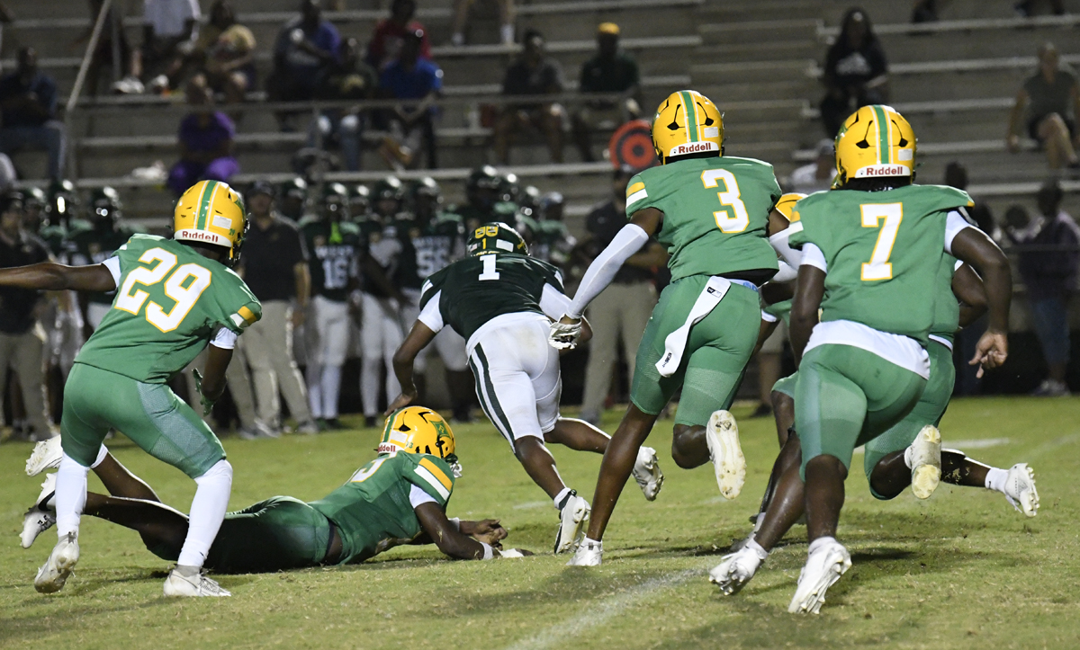 After being sacked for an 8-yard loss, the Raiders’ quarterback, #12, carried for a first down. After a 2-yard carry by #4 of the Raiders, #8 of the Raiders caught a pass and scored with 1:03 remaining in the first quarter. #4, Crowder, carried the pigskin into the end zone for the 2-point conversion. After the first quarter of play, Richmond County led 8-0.
