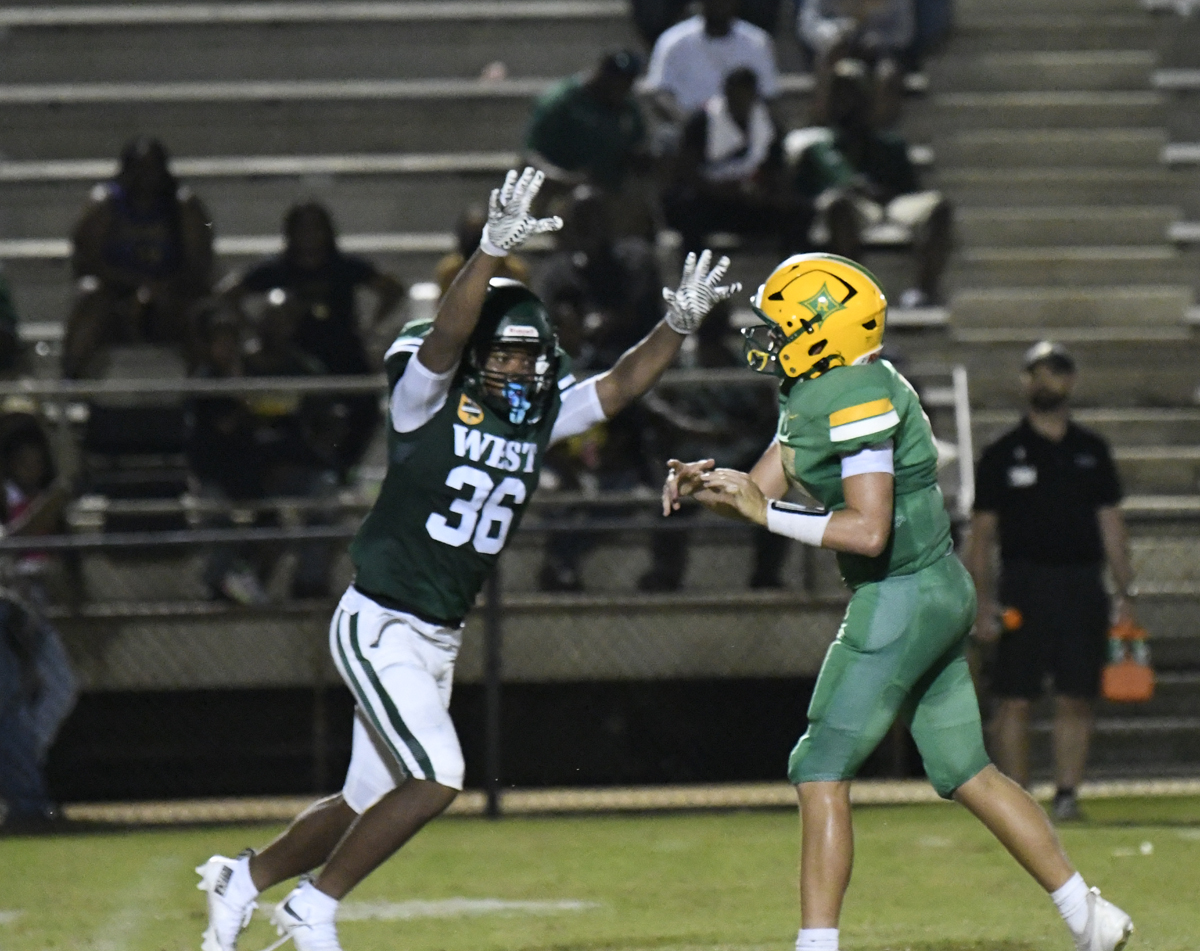 The snap sailed over the head of the Richmond County quarterback that moved the ball from the 30-yard line to the 8-yard line. A pass attempt to #5 for the Raiders was broken up by #12 of West Florence. Richmond County was forced to punt.