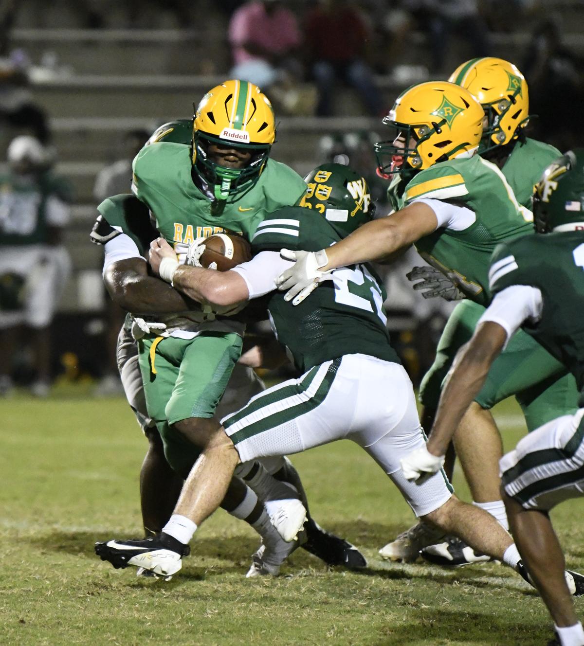 The Richmond County Raiders defeated the West Florence Knights 22-6 in the third match-up in the Dillon Jamboree of Champions played on Friday, August 15, at Dillon Memorial Stadium.