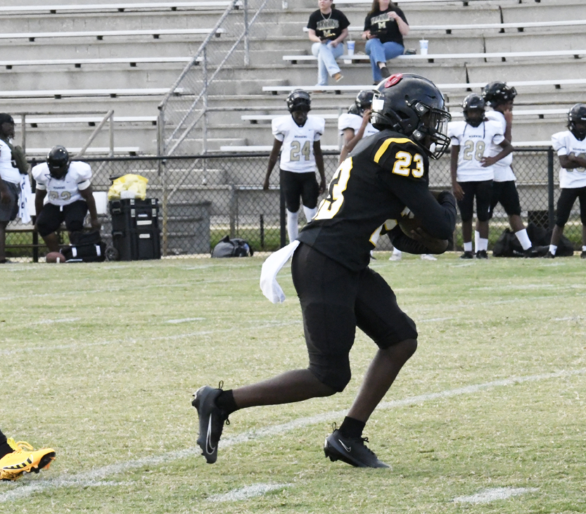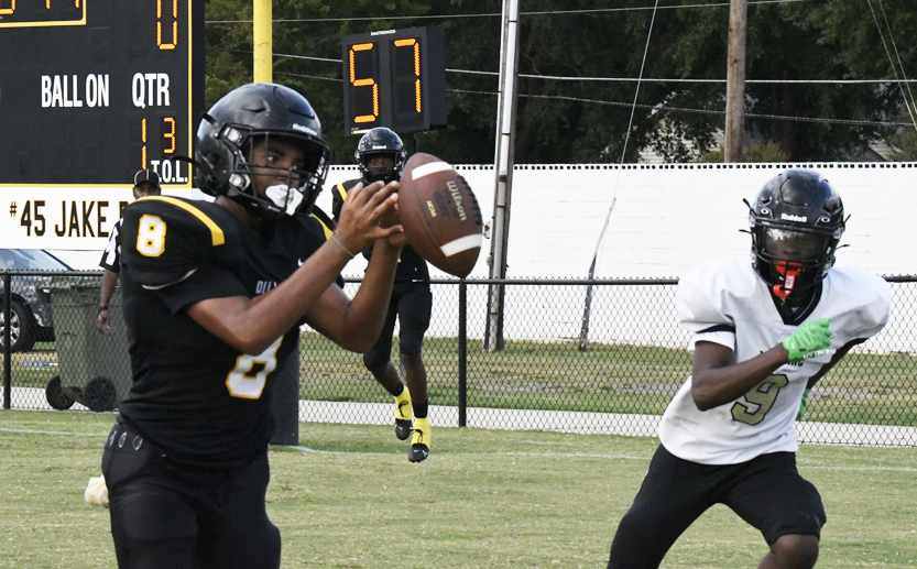 With 3:51 remaining in the first half, Dillon’s #1 scampered for a 58-yard touchdown after the reception. #1 also carried the pigskin into the endzone for the 2-point conversion.
