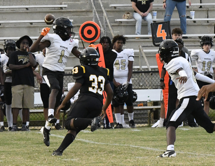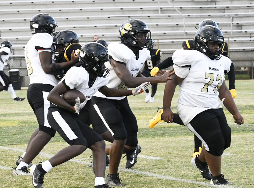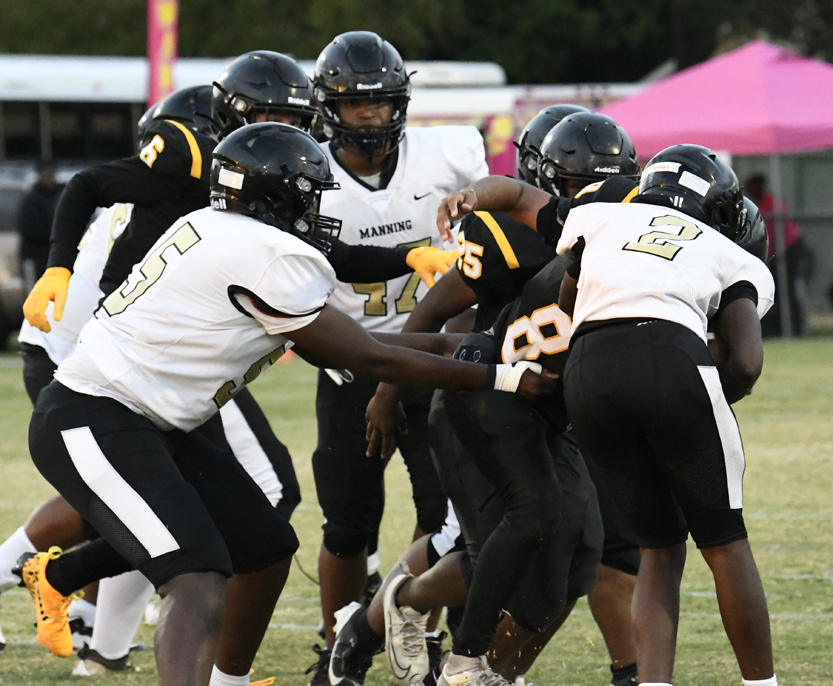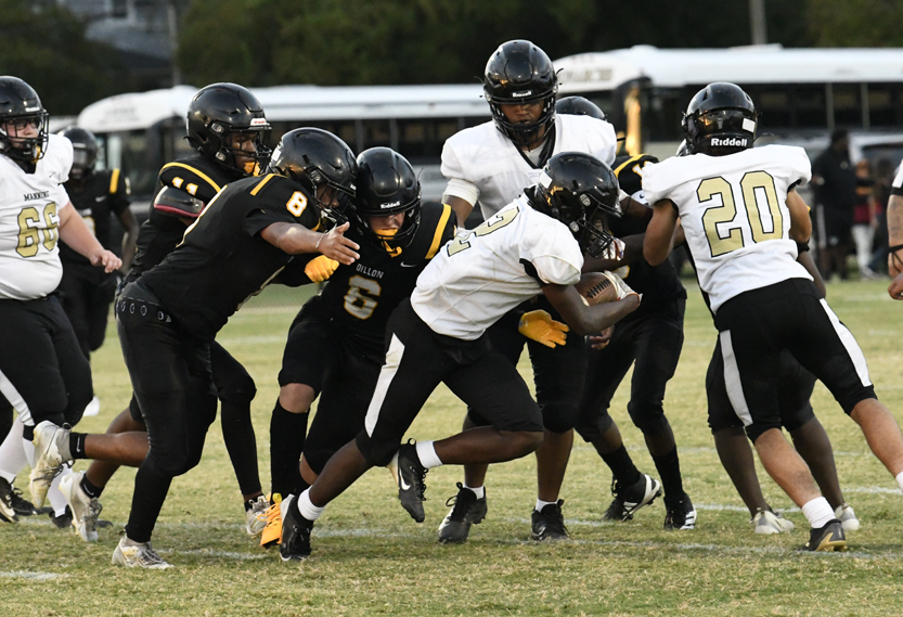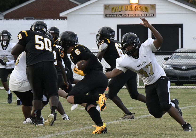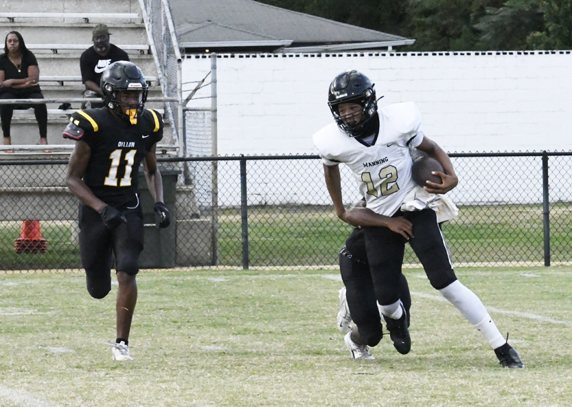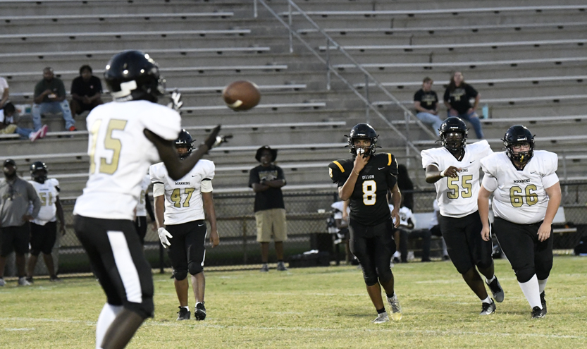Dillon’s defense stopped Manning’s offense as Dillon stopped a run play, deflected a pass followed by an incomplete pass prior to the Monarchs’ punt that was blocked.