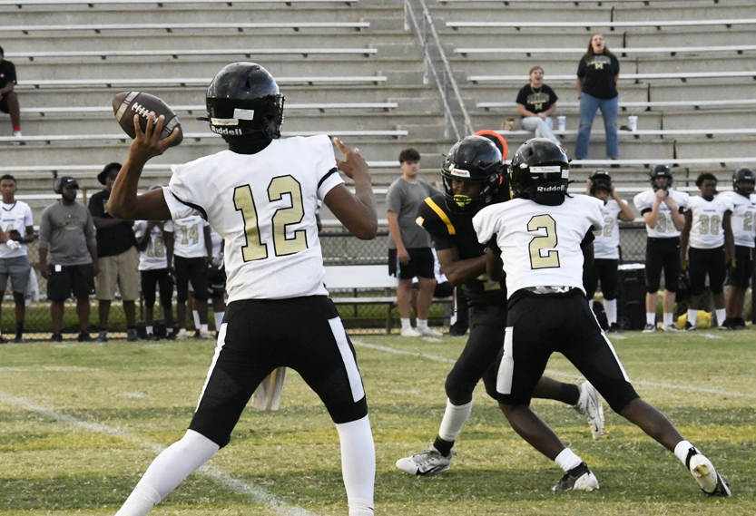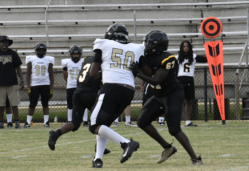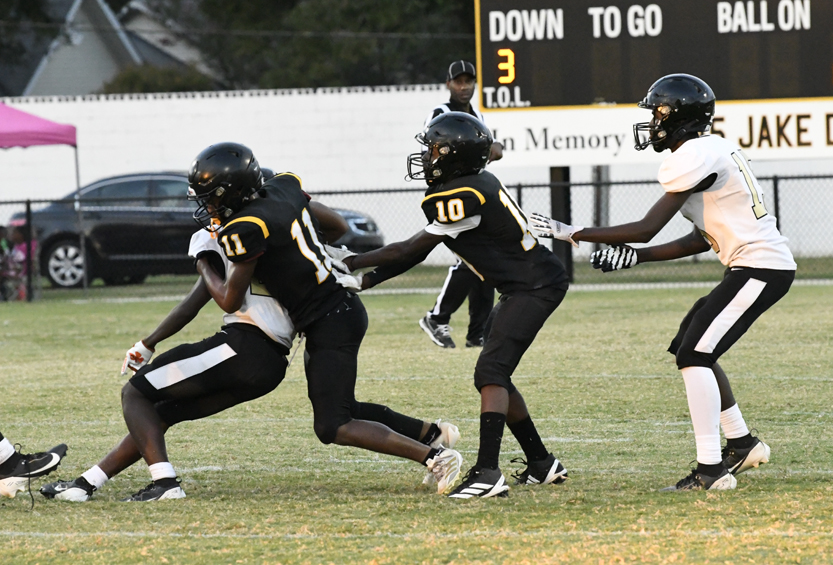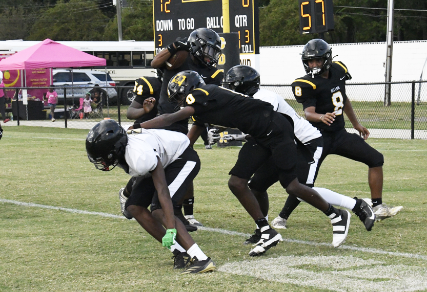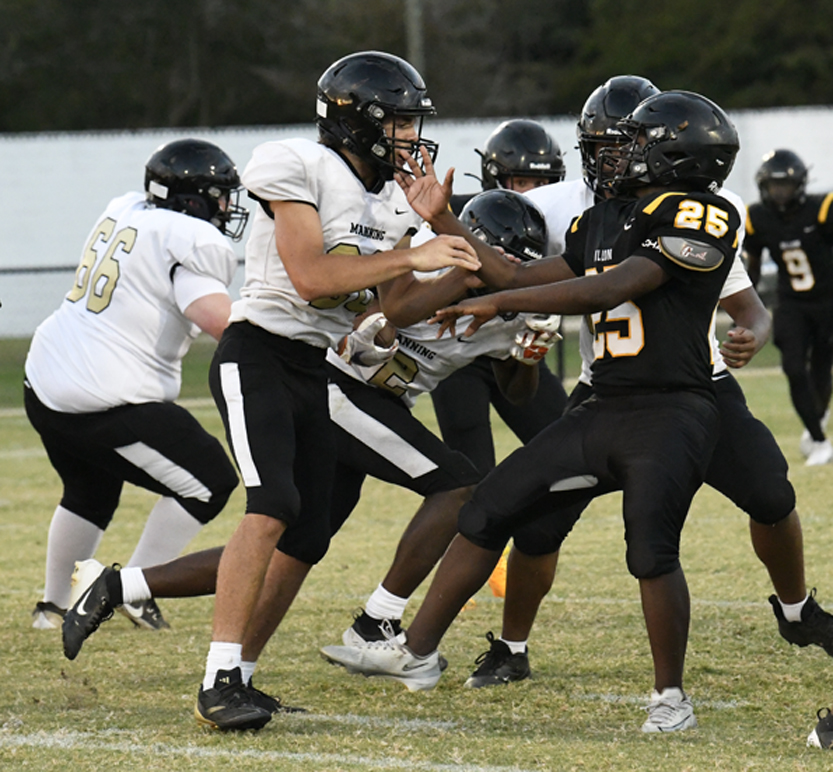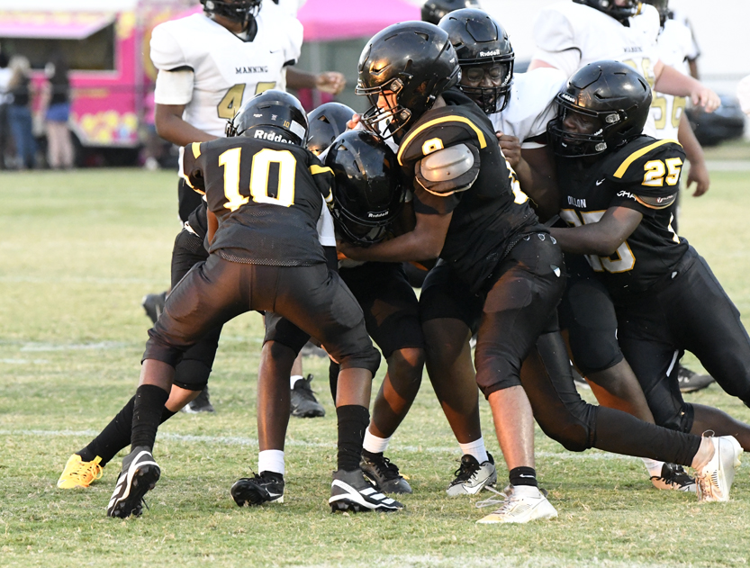 Dillon’s defense stopped Manning’s offense as Dillon stopped a run play, deflected a pass followed by an incomplete pass prior to the Monarchs’ punt that was blocked.