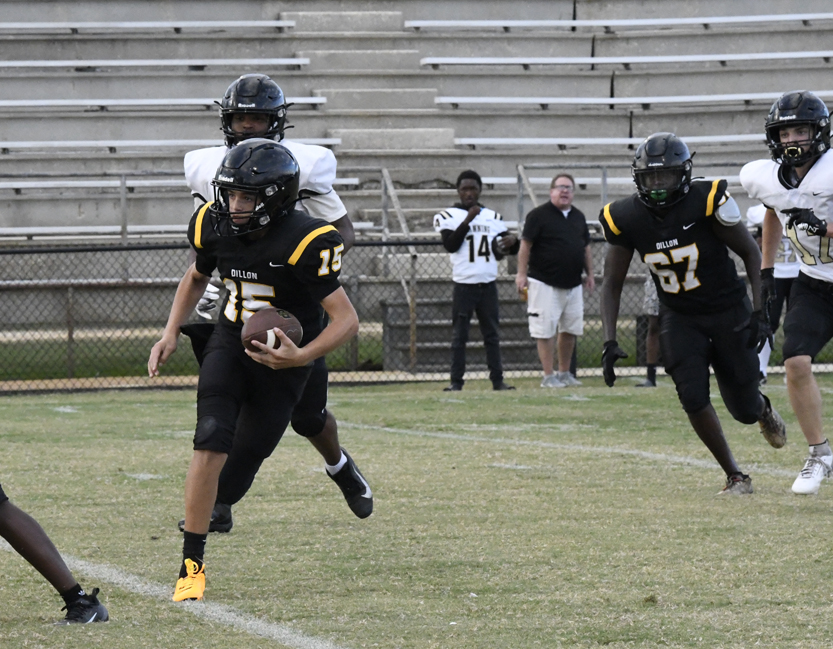 On Dillon’s 4th and 5 play, the Wildcats #3 scored a touchdown and followed with a 2-point conversion to give Dillon a 14-0 lead with 4:34 remaining in the first quarter.