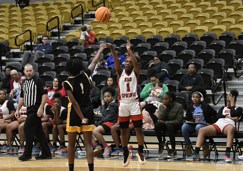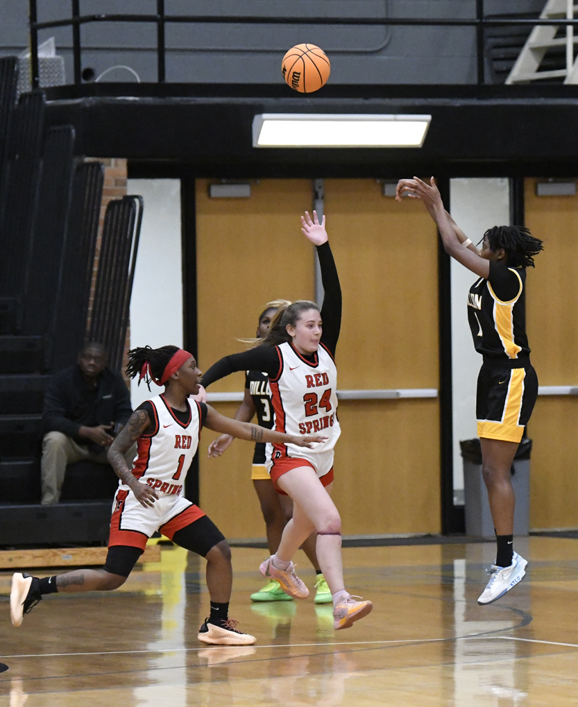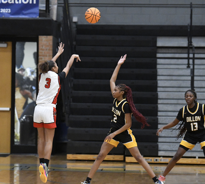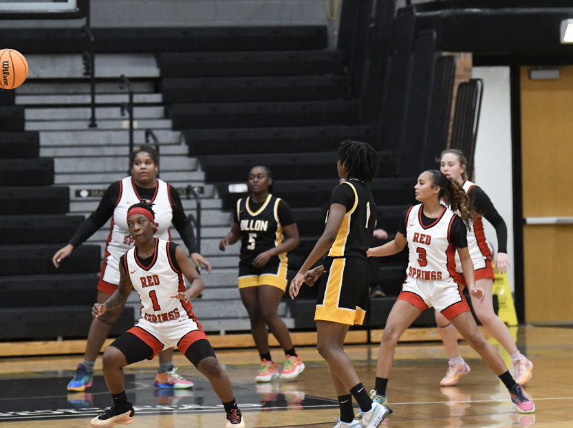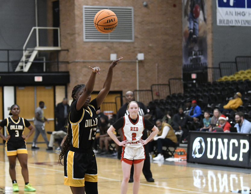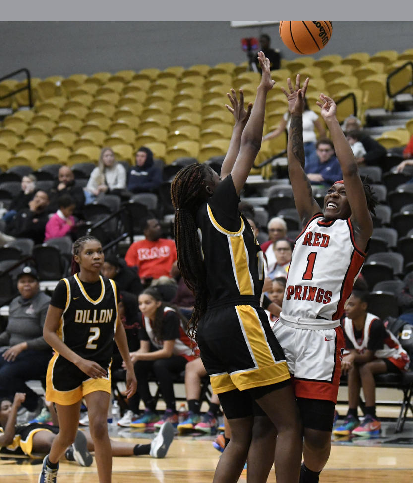 With 4:212 remaining in the first half, Dillon trailed Red Springs 17-10. The Lady Red Devils led by 10 at halftime, 24-14.