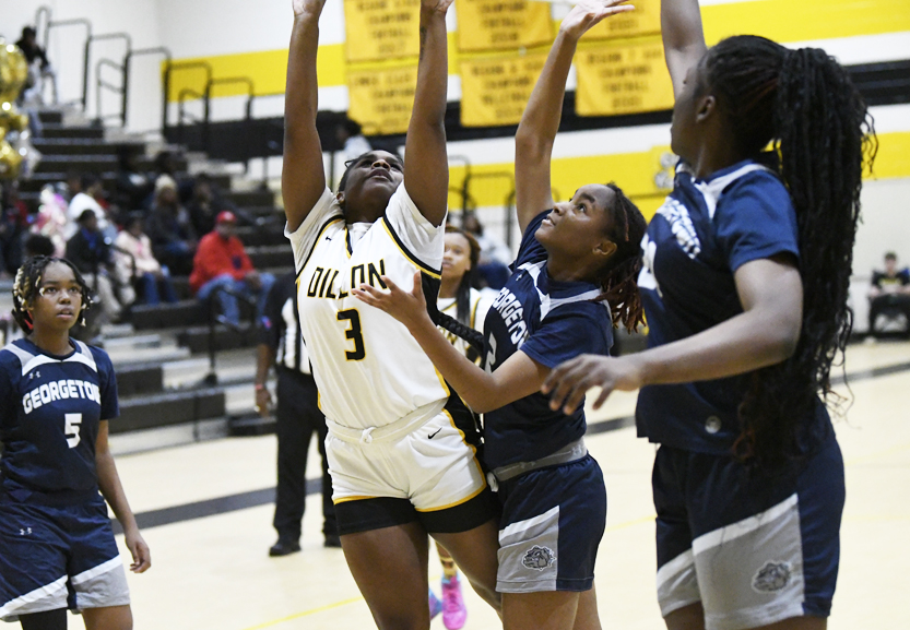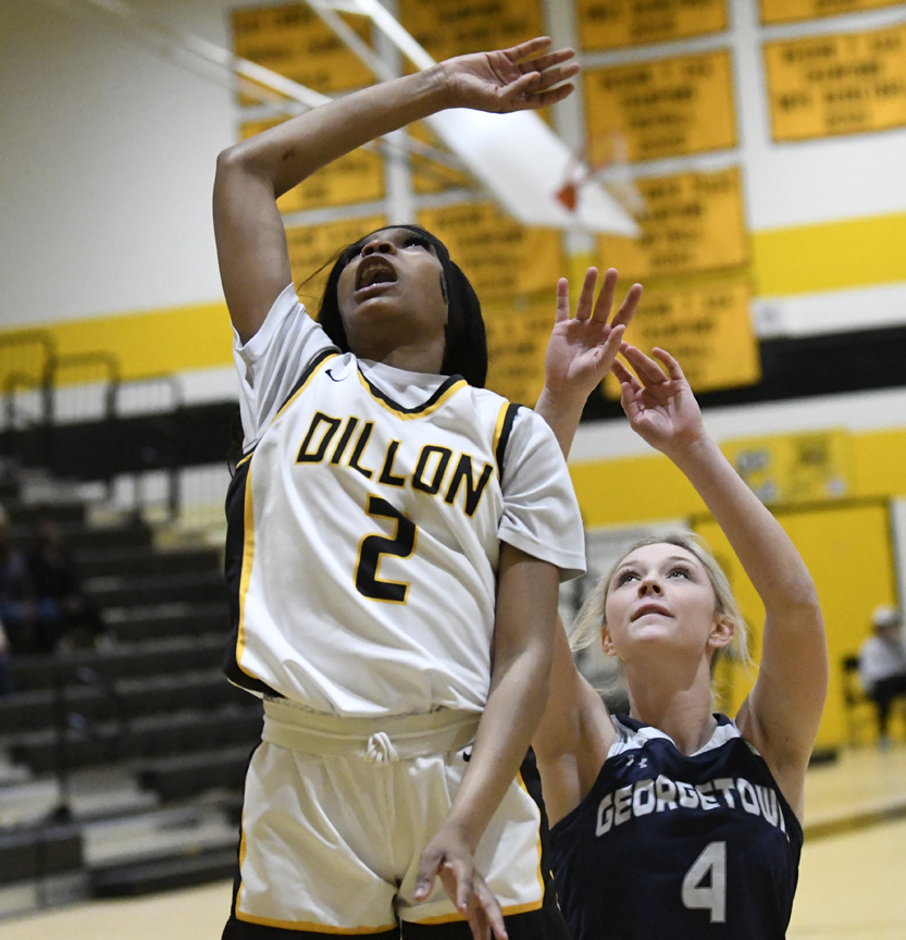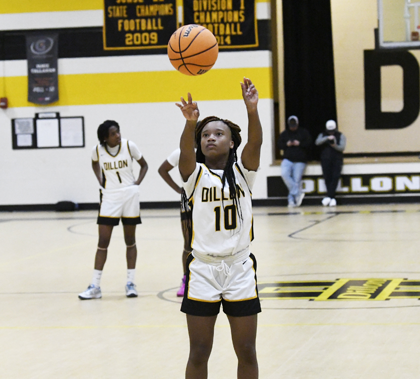 Dillon’s Khwnylahi McKinnon led Dillon with 20 points. She had eight 2-point baskets, a 3-point basket, and a free throw. Mariah Campbell placed 18 points onto the scoreboard with six 2-point baskets, a 3-point basket, and sank 3 of 4 free throws. Treasure Davis added 15 points with six 2-point baskets and 3 of 4 free throws. Ayonna Lester had three 2-point baskets and a free throw for 7 points. Zadaiya Moody and Kiasia McLeod each connected for a 2-point basket.