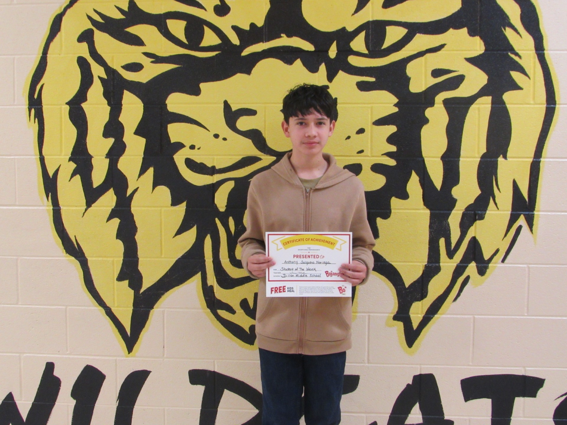 Dillon Middle School would like to congratulate our Student of the Week, Anthony Salguero Noriega! Anthony’s teachers say that he is kind, respectful, hardworking, and conscientious during class. Way to go, Anthony!
