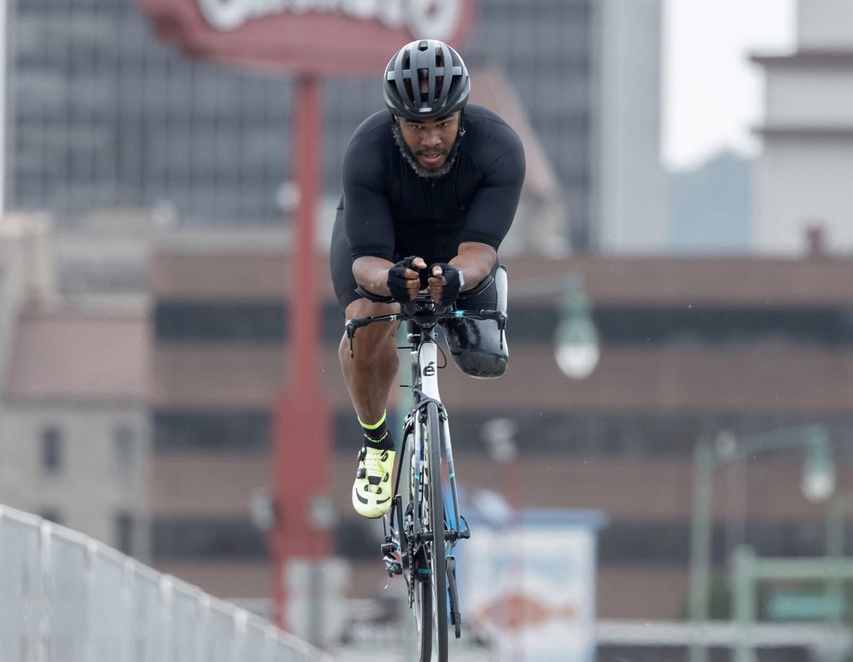 Adrian is an above the knee amputee and rides his bike with his sound leg only. When racing, he is classified as a C2 cyclist. In paracycling, a “C” classification indicates that the cyclist is still able to ride an upright bicycle as opposed to a trike or hand cycle. The number that follows indicates the severity of impairment. The lower the number, the more severe the impairment. The “C” classifications range from C1 to C5.