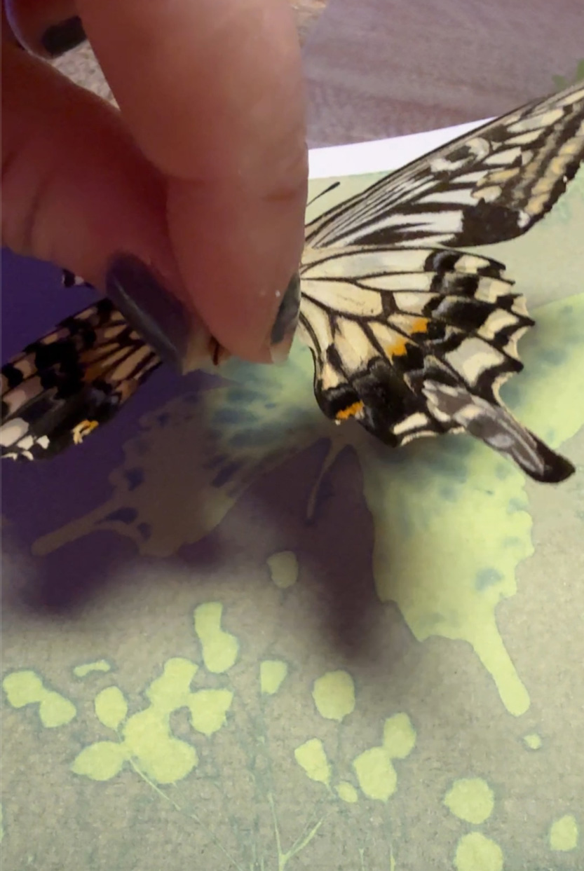 A. It’s not part of a specific series, but the work I have on display in Dillon is definitely connected by a theme. It’s heavily inspired by nature and the idea of signs. This past summer, I read Signs: The Secret Language of the Universe by Laura Lynne Jackson, and it really stuck with me. The book talks about how our loved ones who’ve passed can send us signs to let us know they’re still with us. For me, butterflies have always been a sign from my mom, who passed away from breast cancer 14 years ago. Whether or not others believe in that kind of thing, it brings me comfort—and I truly do see them everywhere. They even land on me sometimes. So, this collection is very personal, rooted in memory, and the way nature can hold meaning.