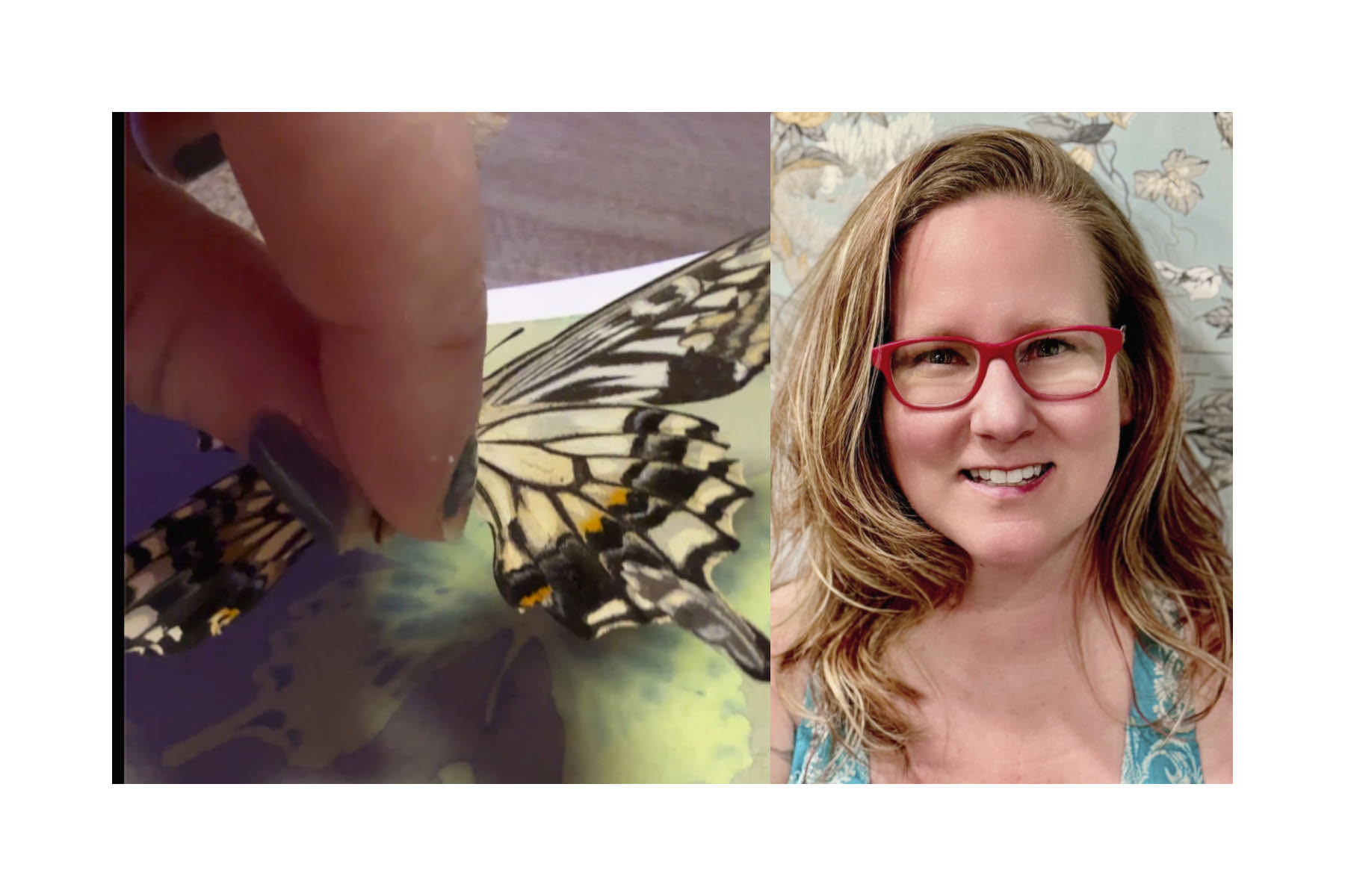 A. It’s not part of a specific series, but the work I have on display in Dillon is definitely connected by a theme. It’s heavily inspired by nature and the idea of signs. This past summer, I read Signs: The Secret Language of the Universe by Laura Lynne Jackson, and it really stuck with me. The book talks about how our loved ones who’ve passed can send us signs to let us know they’re still with us. For me, butterflies have always been a sign from my mom, who passed away from breast cancer 14 years ago. Whether or not others believe in that kind of thing, it brings me comfort—and I truly do see them everywhere. They even land on me sometimes. So, this collection is very personal, rooted in memory, and the way nature can hold meaning.