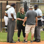 On the first play of the game, Latta’s Samantha Townsend was injured as she turned her ankle on first base.