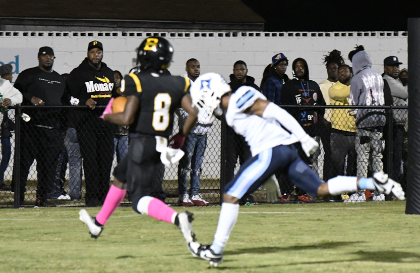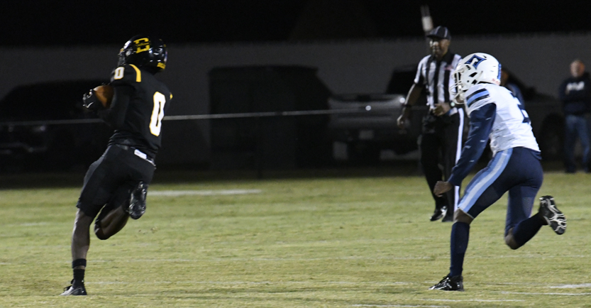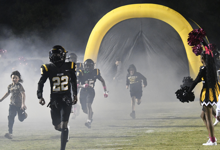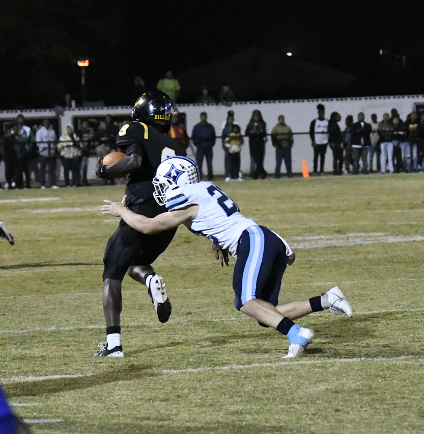 With 41 seconds remaining in the third quarter, Dillon’s Rahmond Hamilton fired a completed pass to Zamarious Robertson who scored the touchdown. The PAT was good by Stephen Rojas to give Dillon a 35-7 lead.