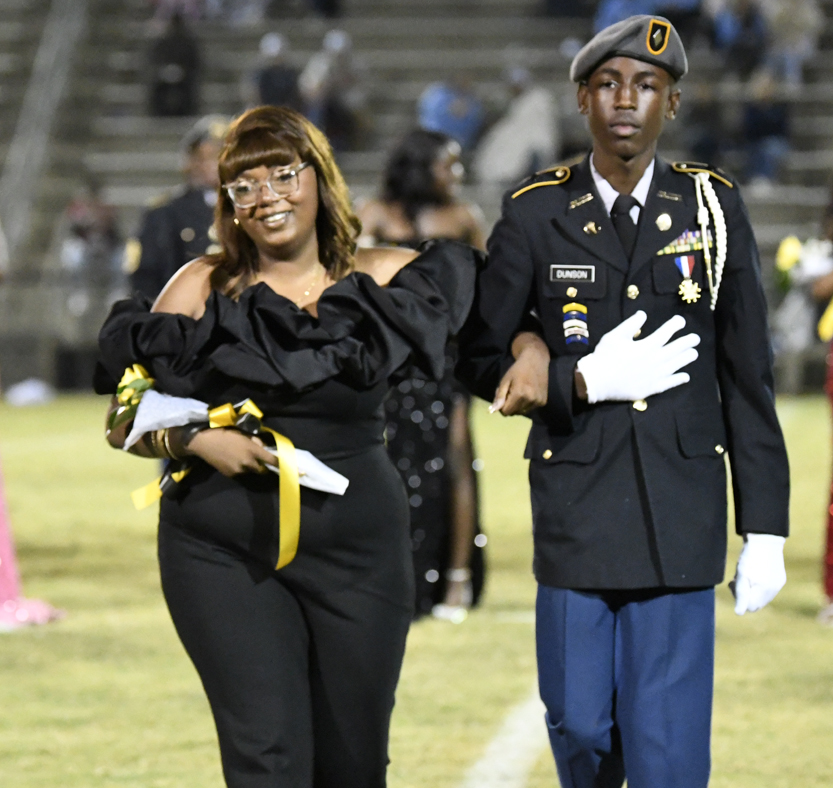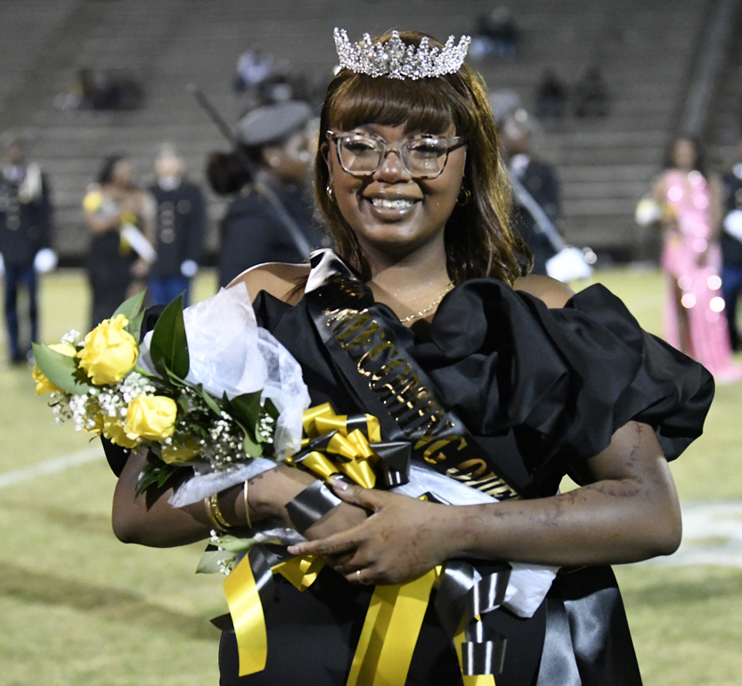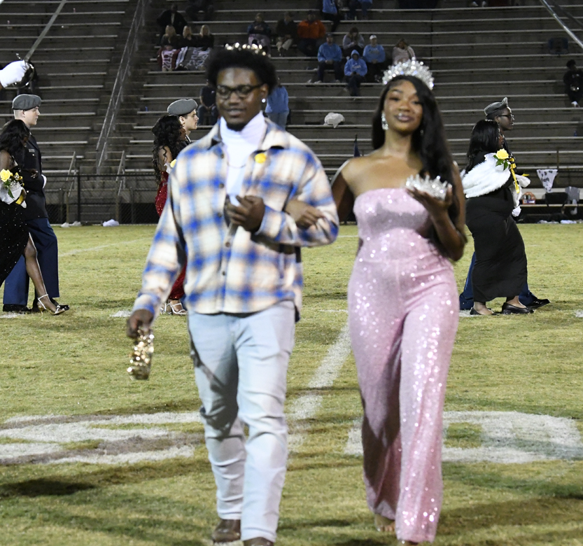At halftime, Dillon celebrated homecoming with DHS Principal Timothy Gibbs and DHS’s reigning 2023-2024 Homecoming Queen Janeja Jones and Homecoming King Sirmod McCallum assisted as Gloria McLellan was crowned 2024-2025 Homecoming Queen. Her court consisted of first runner-up Lataisha Alls, second runner-up Da’Kyiah Palmer, and third runner-up Nessiah Moore. The Homecoming King was Dan Graves with the second runner-up Joseph McAllister and first runner-up Daiveon Swindler.