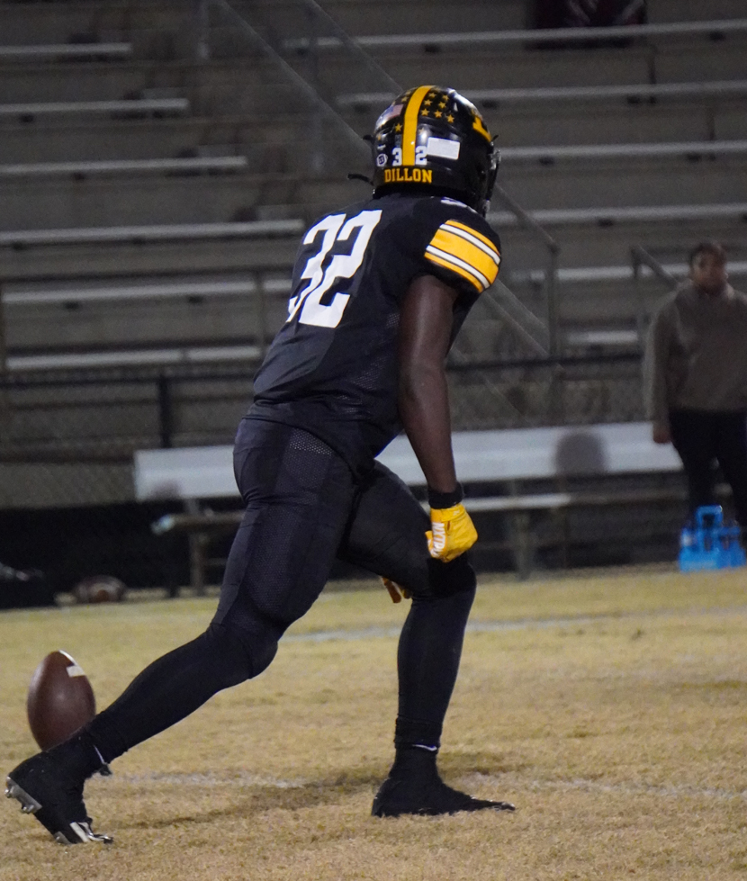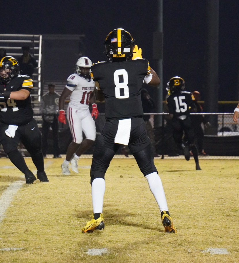 The Dillon Wildcats’ Rike Niyongabo had 3 receptions for 43 yards, a touchdown, and a long run of 32 yards. Nibras Harrison had a reception for 28 yards. Zamaurious Robertson had 2 receptions for 18 with a long one of 9 yards. Dominick Felton had an 18-yard reception.