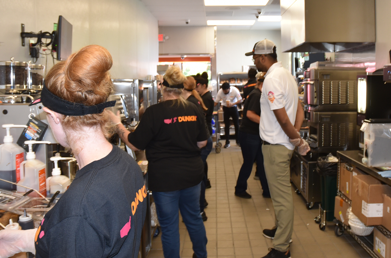 Many were present as cars lined up for an opportunity to enjoy one of America’s favorite coffee and baked goods and also Dunkin’ Rewards.