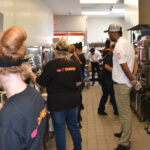 Some of the many employees preparing items