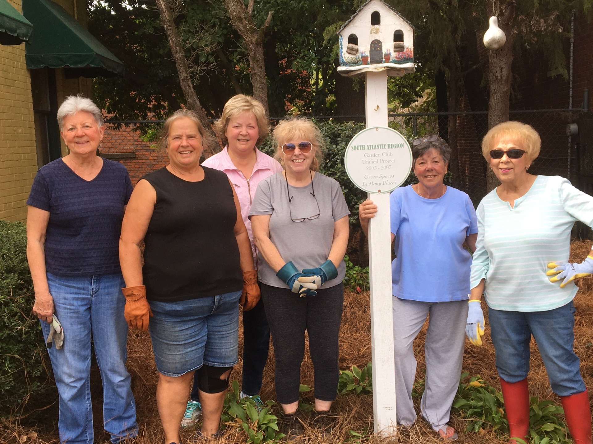 DOGWOOD GARDEN CLUB WORKS ON GARDEN PLOT BY LATTA POST OFFICE
