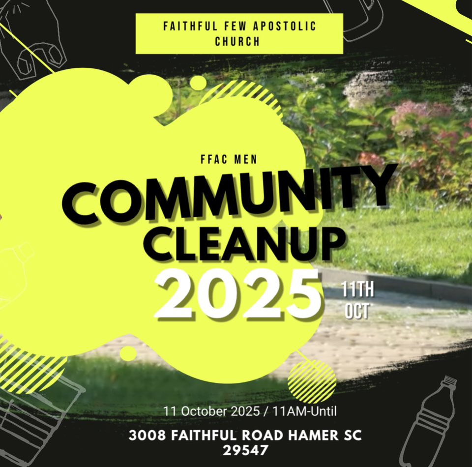 Faithful Few Apostolic Church will hold a Community Clean-up.
