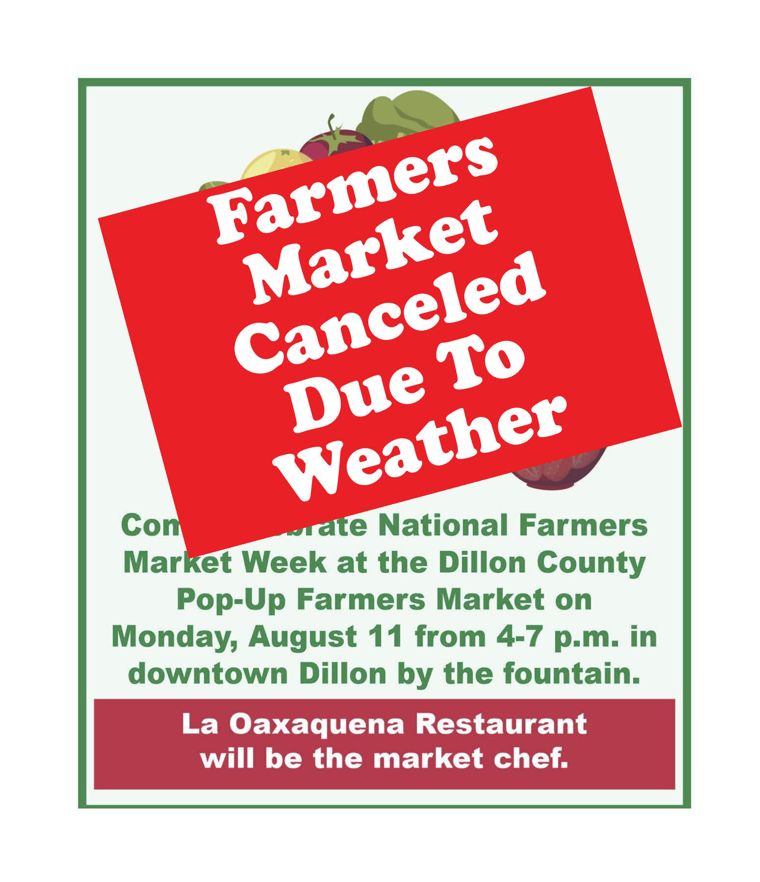 • Farmers Market Canceled Due To Weather