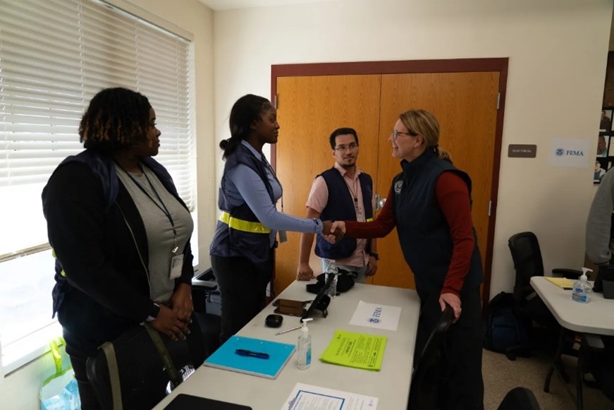 CALDWELL COUNTY, North Carolina – Administrator Criswell visits with staff at a Disaster Recovery Center who have been helping survivors after Helene. Centers are open in every affected states, including six so far in North Carolina. Survivors may find their closest center at FEMA.gov/DRC. (Photo Credit: FEMA)