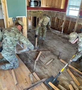 WESTERN NORTH CAROLINA – Soldiers assigned to 2nd Battalion, 502nd Infantry Regiment, 2nd Mobile Brigade, 101st Airborne Division help with cleaning up a house. (Photo Credit: U.S. Army)