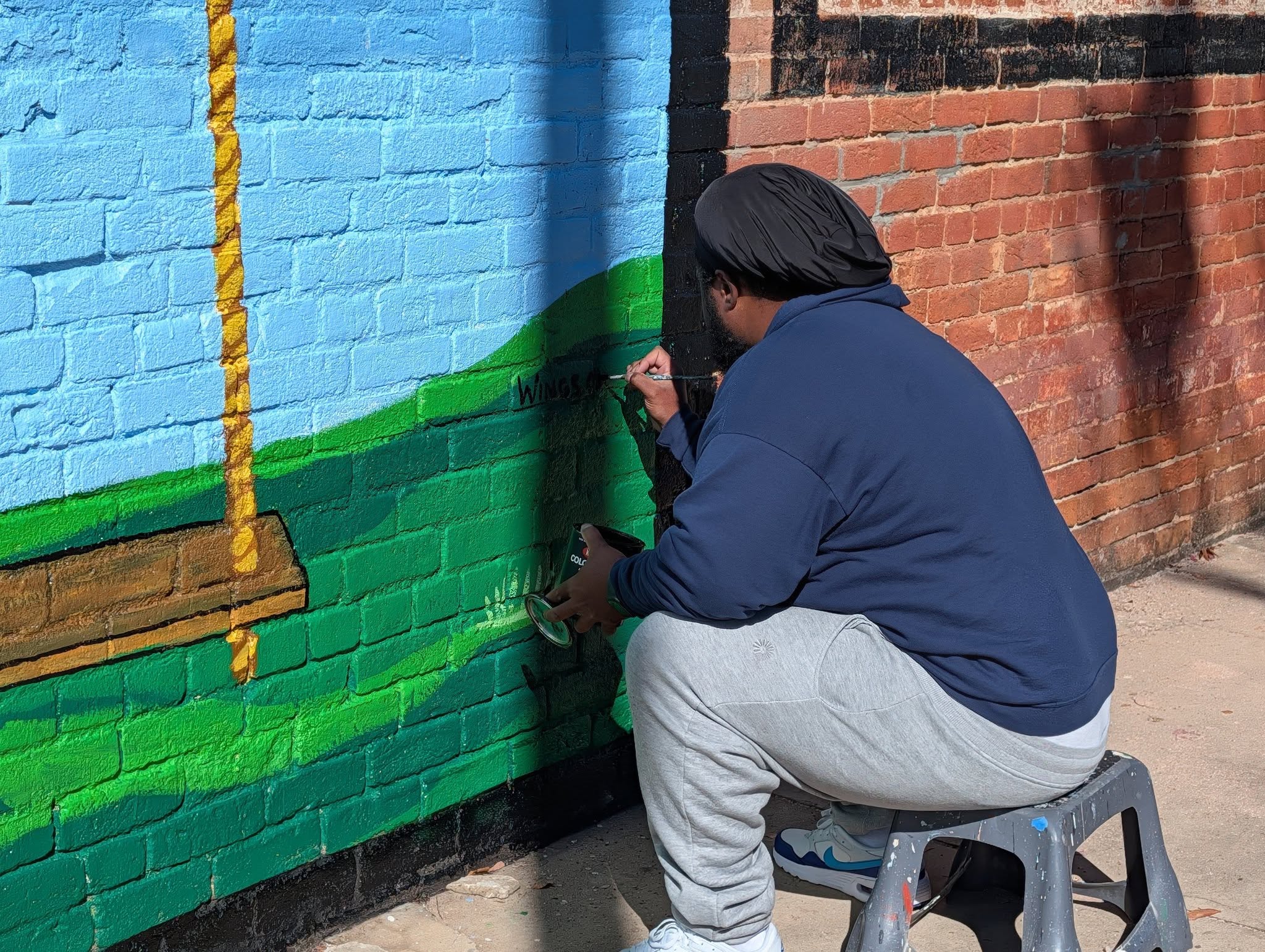 The mural has been named “Wings of Praise.” The public is invited to stop by become a butterfly, climb the tree, or sit in the swing and become part of the mural.