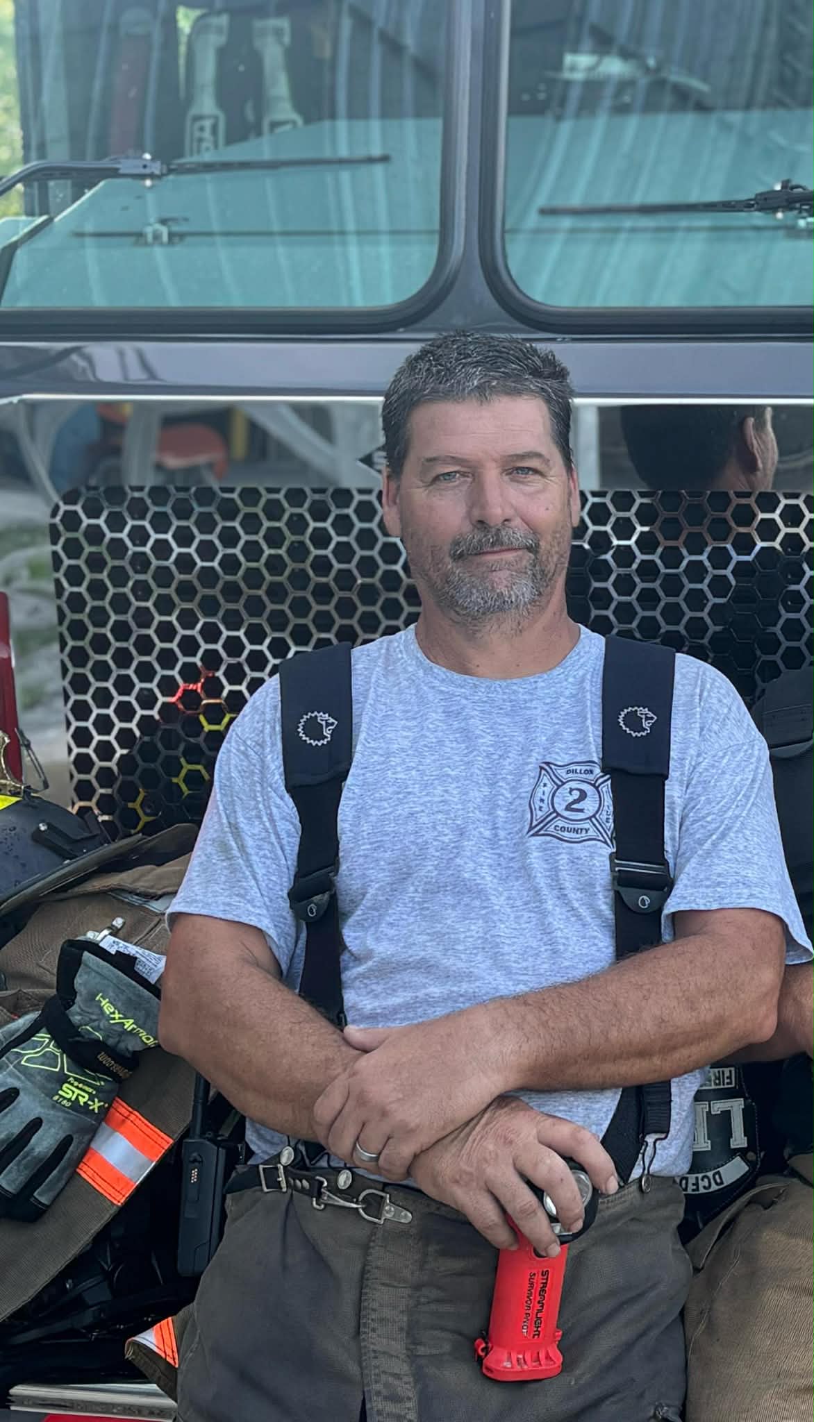 William Anthony Weatherford, LF9, Firefighter/full-time engineer for Dillon County Station Two in Latta, has been a volunteer firefighter for over 20 years. He started as a volunteer firefighter for Marion Rural Fire Department under the leadership of Chief William “Billy” Wallace for several years and received basic firefighter training. He took a break for a few years and became Dillon County citizen during that time. Then when Hurricane Florence was about hit our area, he went to a town/volunteer meeting prior to the hurricane and they asked if anyone had any type of first responder experience, and he stepped up.