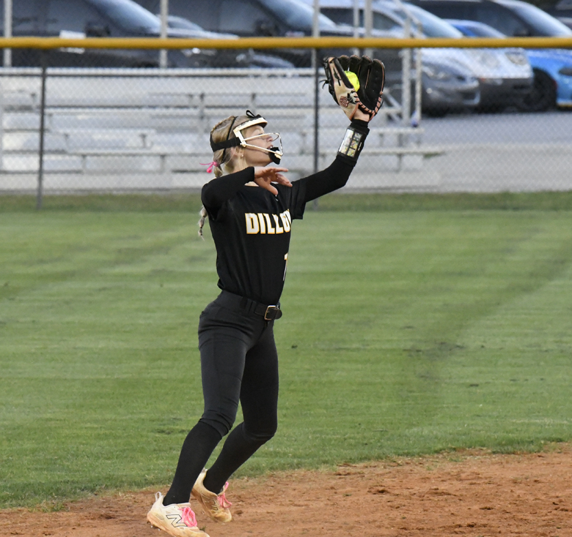 Dillon responded with a run in the bottom of the first inning to tie the score at 1. Dillon’s leadoff hitter, Makenna Meekins garnered a walk. Meekins stole second and moved to third on a passed ball. K. Tanksley hit a grounder to first and was out but Meekins crossed home plated for the score.