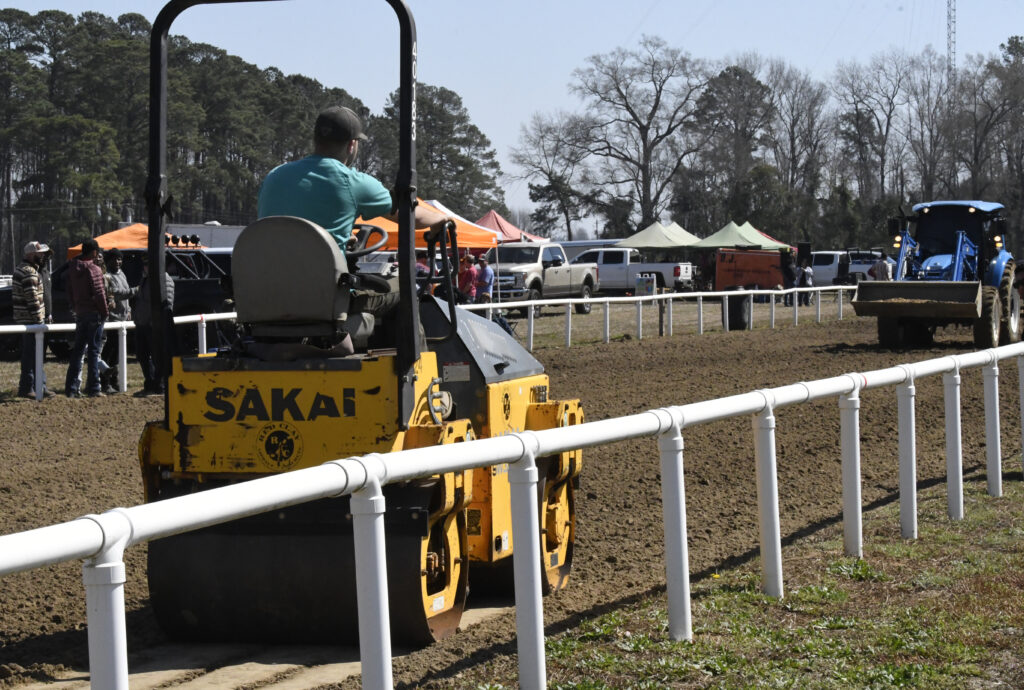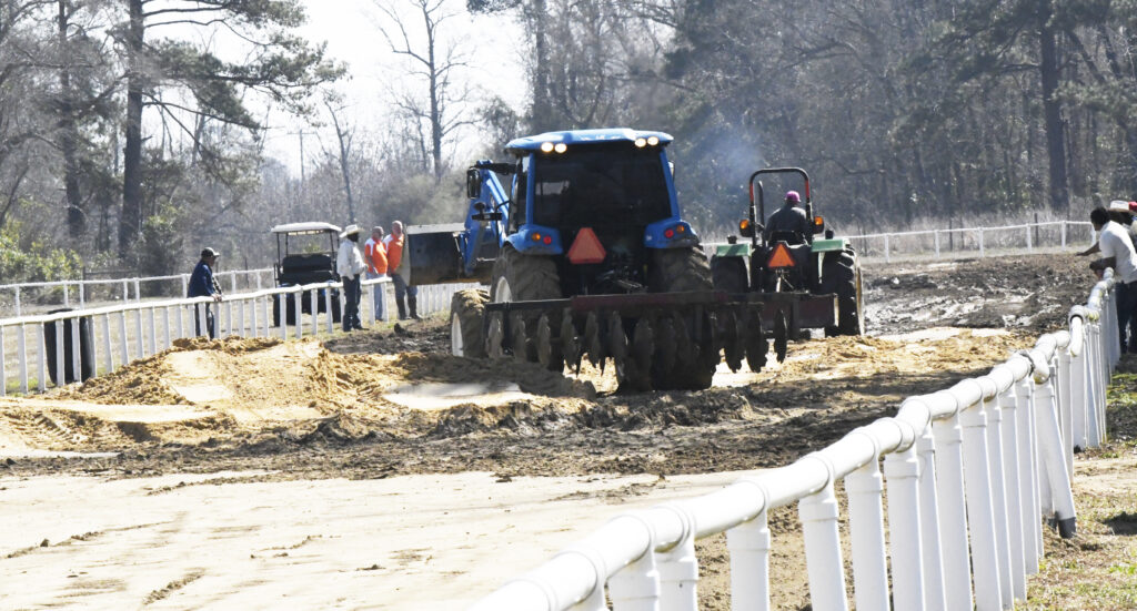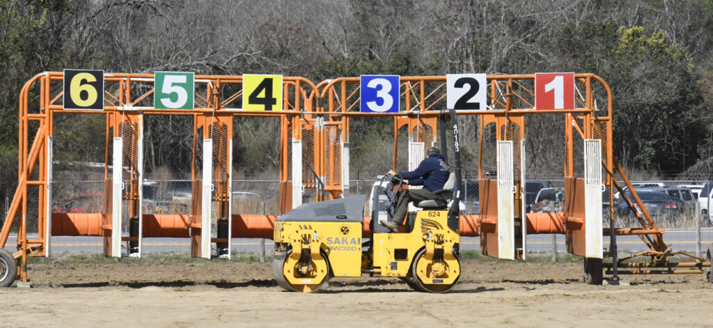 The Gia’s team was hard at work re-arranging the starting gate and adding sand/dirt to the track and used tractors with attachments to help smooth the track.