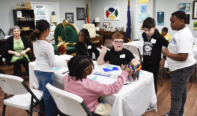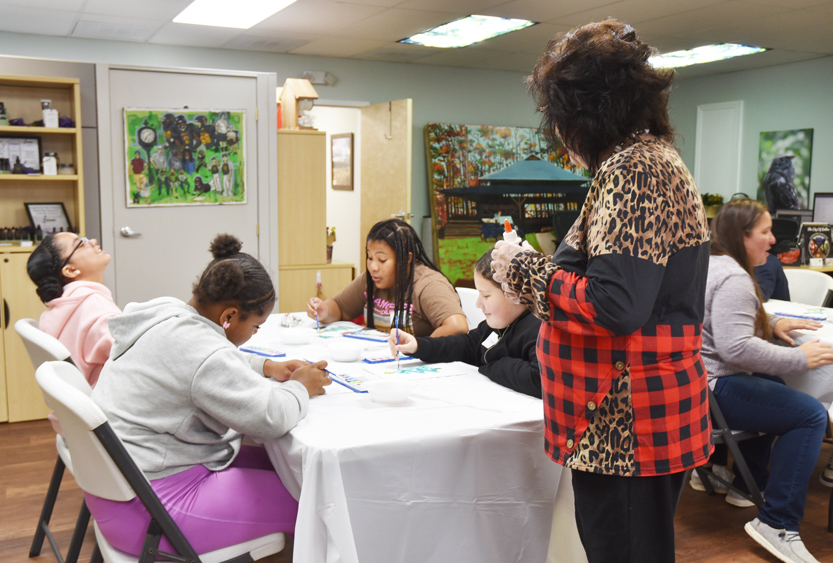 Rebecca Stager, the Gifted and Talented teachers for Gordon, Lake View, and Dillon Elementary, took her students on a field trip to the City of Dillon Visitor Center on Friday. While there, Artist Kay Bradsher gave the students an art class.