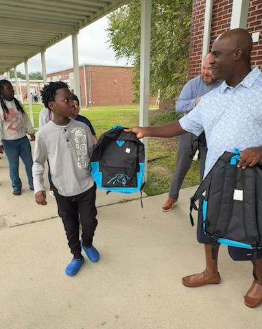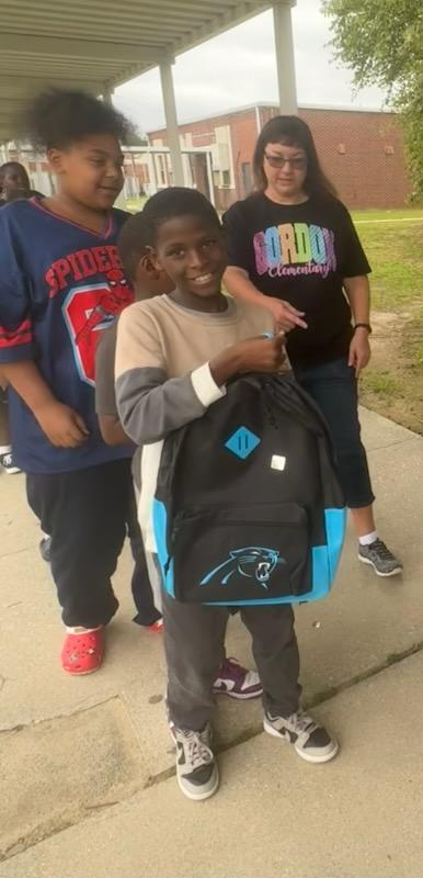 • Gordon Elementary School Students Get Bookbags From Carolina Panthers