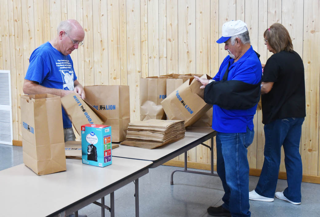 Upon returning to the Hamer Church of God Fellowship Building, the Help For Veterans, Inc., volunteers bagged grocery items purchased by Help For Veterans, Inc., and the refrigerated items donated and delivered by Pastor Kevin Byrd and Jo Jo Hunt.
