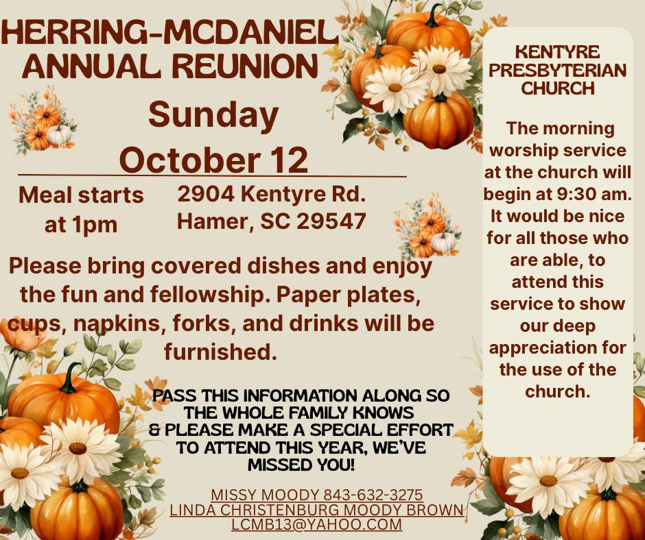 Herring-McDaniel Annual Reunion Is October 12th