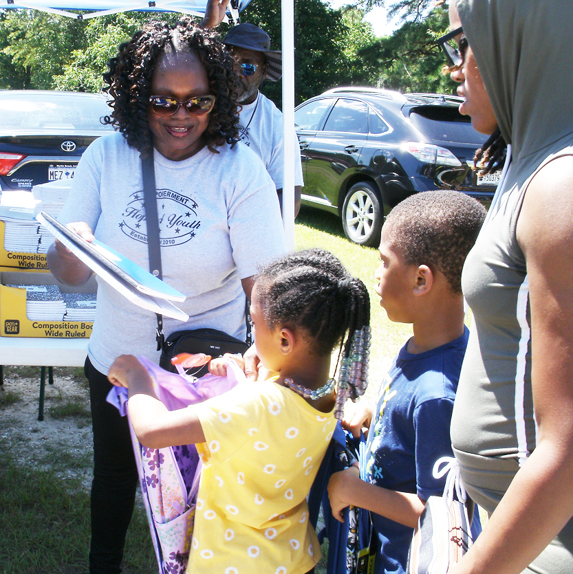 Hope For Youth held a Back-To-School Giveaway on Saturday, July 19, at New Hope Missionary Baptist Church in Latta. Lines were long as numerous people turned out for the event. Approximately 200-300 have turned out for past events. Families stopped at different stations where children received bookbags; supplies such as paper, pencils, crayons, etc.; and many items suitable for school. There were free slushies to enjoy in the summer heat as well as popcorn. Plates of food were also being given away. It was a fantastic event to help students get off on the right foot for the new school year.