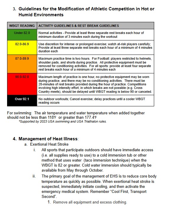 A WBGT reading of 87.0-89.9 means that players restricted to helmets, shoulder A pads, and shorts and cannot practice for more than two hours.