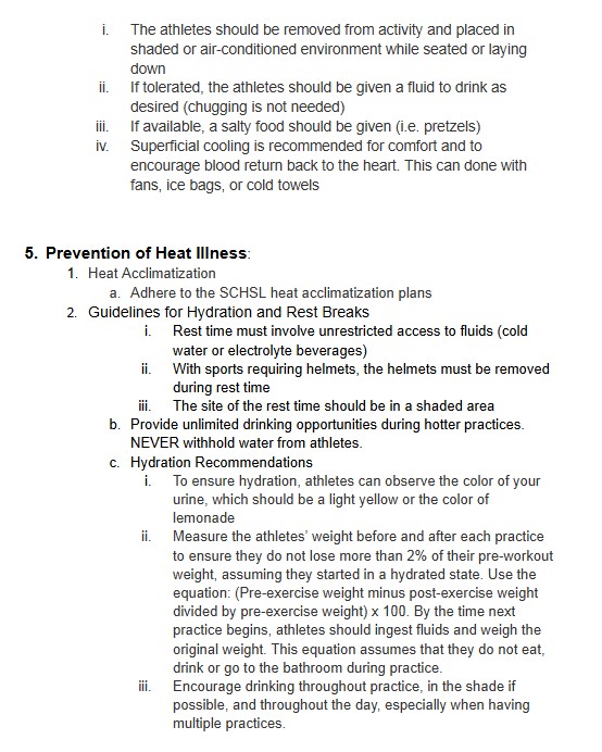 (Endorsed by SCATA, Ad Hoc SCHSL Preseason Acclimatization Committee)