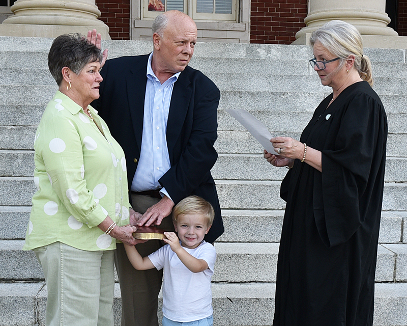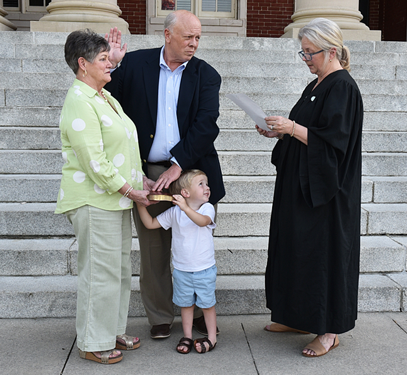 With many family and friends present, Chip Huggins, the new councilman for Dillon City District 3, was sworn into office on Monday night at the steps of the Dillon County Courthouse by his sister, Judge Salley McIntyre. At the Dillon City Council meeting during council reports, Huggins thanked the voters of District 3 for electing him and putting their trust in him for the next four years. He said he looked forward to working with council for the betterment of his district and the City of Dillon. He has an open door and said he would be glad to talk to anyone at any time. Huggins previously served as a councilman 29 years ago and brings a great deal of experience to the table.