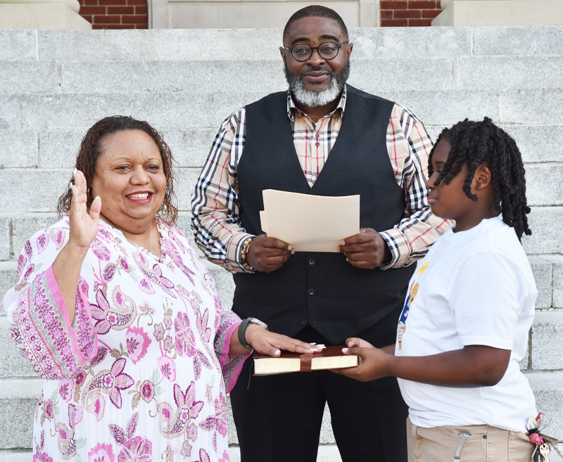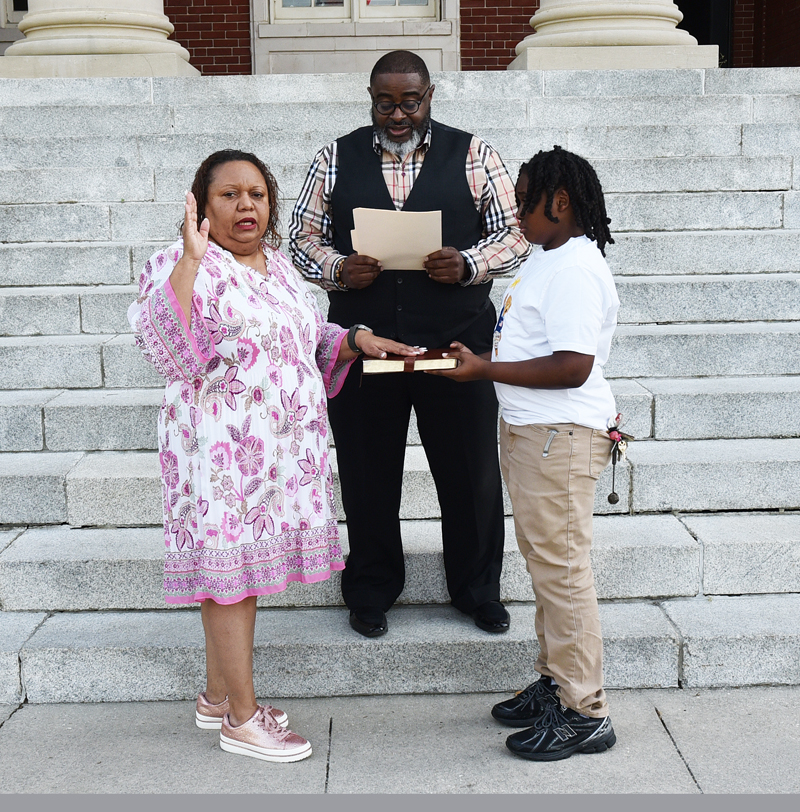 With her son, Daniel, holding the Bible, Danielle M. Smith, a local veteran, was sworn into office for Dillon City District 1 at the steps of the historic Dillon County Courthouse. Administering the oath was Dr. Rodney L. McCorkle of Manning Baptist Church. At the Dillon City Council meeting during council reports, Smith said that she wanted to thank everyone for trusting her and uplifiting her as the councilwoman for District 1. She said she looks forward to working with the community, listening to people’s opinions, and learning what they feel their needs are.